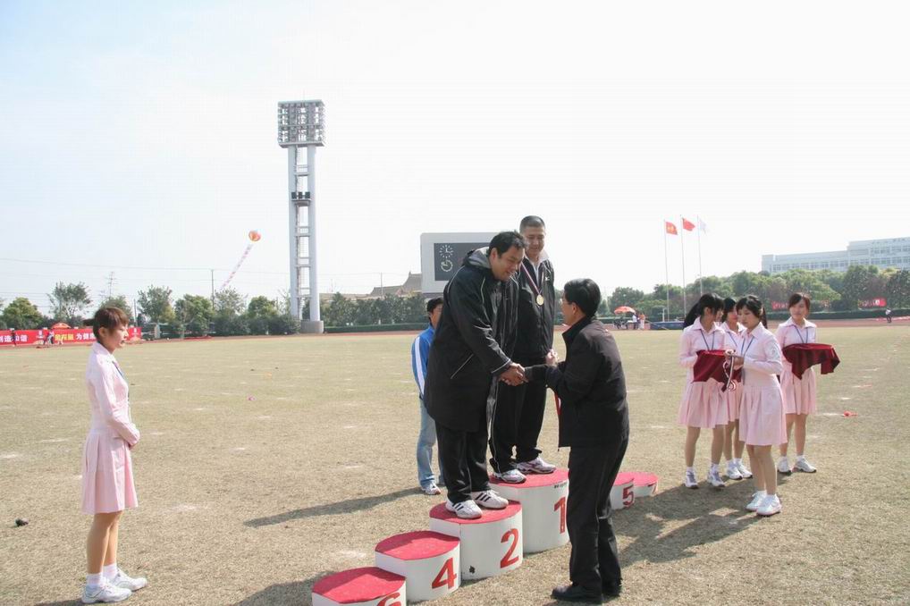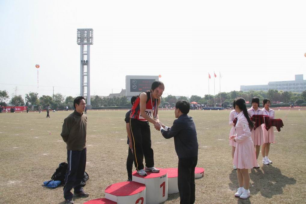 |  秋日高照,彩旗飘飘,在全市26万科教员工的期待中,上海市首届科教工作者运动会于11月3日上午8:00在上海大学宝山校区体育中心隆重开幕。由我校艺术设计学院吉敏君同学设计的首运会会旗伴随着雄壮的首运会会歌徐徐升起,在上海大学体育场上空高高飘扬。 来自科教系统102个单位的广播操队伍整齐划一的动作拉开了开幕式的序幕,磅礴壮观的气势给现场观众以强烈的视觉冲击。随后,简洁优雅的木兰双环操、极富民族特色的太极拳和动感十足的健身健美操一一展现在观众面前。展示项目结束后,以“我们在闪光”为主题的文艺表演汇集了上海高校的拳头产品,上海戏剧学院的现代芭蕾、上海体育学院的舞龙舞狮表演以及东道主上海大学的武术表演不断将文艺表演推向高潮,他们精彩的表演充满着昂扬向上的蓬勃朝气,将本届运动会的主题诠释得淋漓尽致,赢得了主席台嘉宾和看台观众的阵阵喝彩。 我校首运会代表团团长、校体委主任孙培雷副校长率领由体育部、高职学院、计算中心、基础学院等部门近100名教职工组成的代表队参加了开幕式(广播操、太极拳)、田径以及趣味赛项目的比赛。党委副书记、工会主席田信灿同志带病参加了开幕式广播操展示和抱球接力,并看望了参赛的教职员工。 随着市人大副主任、市总工会主席陈豪同志的发令枪声,田径、趣味赛项目的比赛于上午九点正式开始。首运会赛场上我校运动健儿不断传来喜讯,高职学院吴旭东老师在男子青年100米(高校组)的比赛中为我校摘取了首运会第一块金牌。此后,跳高、铅球、跳远、男子4×100米接力以及抱球接力、投篮等项目纷纷传来工程大教职工获得佳绩的喜讯。 在本次运动会赛场上,我校教职工不仅在赛场上表现不俗,在场外,也涌现出不少让人感动的事迹。体育部青年教师褚昕宇身患感冒又晕车,但她仍然坚持参加了太极拳展示、铅球和排球发球等多个项目,还不停地穿梭在赛场上为运动员照看衣物、递送饮料、加油呐喊;体育部施海平等老师为了能够准时参赛,周五晚上就留宿在松江搭乘第二天早上5:30的班车……赛场内外,他们以自己的实际行动在向首运会展示工程大教职工的团队精神和集体荣誉感。 傍晚17:00,夜幕低垂,凉风阵阵,带着些许的疲惫,也带着胜利后的喜悦,我校代表队告别了首运会赛场凯旋而归。 | 序号 | 项目 | 获奖者 | 成绩 | 名次 | | 1 | 男青100米 | 吴旭东 | 11.7" | 1 | | 2 | 男青跳远 | 吴旭东 | 6.57米 | 2 | | 3 | 男青跳远 | 武军 | 6.04米 | 5 | | 4 | 男青跳高 | 王磊 | 1.50米 | 5 | | 5 | 男青铅球 | 叶峰 | 10.45米 | 2 | | 6 | 男子中年铅球 | 宋玉 | 9.34米 | 8 | | 7 | 女子中年铅球 | 谢敏 | 9.13米 | 3 | | 8 | 女子青年铅球 | 褚昕宇 | 8.68米 | 4 | | 9 | 女子青年铅球 | 王文秀 | 7.94米 | 5 | | 10 | 男青4*100米接力 | 郑振昆、金美祥、武军、刘诺 | / | 3 | | 11 | 老年女子60米 | 吴淞荦 | 9.6" | 3 | | 12 | 女子抱球接力 | 吴淞荦等 | 46" | 3 | | 13 | 篮球投篮 | 季萍等 | 55个 | 8 | |
