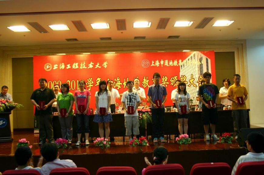 |  为了推进学院建设,鼓励师生积极为学院建设做更多的贡献,城市轨道交通学院于7月6日上午在松江校区图文信息中心第二报告厅隆重举办上海地铁教育奖颁奖大会。会议由城市轨道交通学院党总支副书记徐建华主持。 出席会议的有上海工程技术大学副校长孙培雷、上海申通地铁集团有限公司人事部部长梁慧萍、上海工程技术大学城市轨道交通学院院长柴晓冬、上海申通地铁集团有限公司教育培训中心主任、城市轨道交通学院副院长叶华平等领导,学院部分师生参加了会议。 会上,梁慧萍部长宣读获2009~2010学年奖学金名单、柴晓冬院长宣读获2009~2010学年奖教金名单。宣读完毕后,领导给获奖者颁奖。 学生代表田中玉热情洋溢的发言让在场师生掌声不断,责任、感恩道出了一个大三学长对学弟学妹们的殷切建议,更表达出对老师们最真挚的感谢。方宇老师总结了自己作为一线教师两年来的工作感悟,并对学生提出了殷切的期望。 叶华平主任对城市轨道交通学院的发展给予了肯定和更高的期望。孙培雷副校长最后总结性的发言更是给予老师和学生很高的赞扬和更大的期望。 整个典礼在师生的掌声和欢笑声中结束。同学们斗志昂扬,表示将继续为城市轨道交通学院的发展尽自己最大的努力!     |