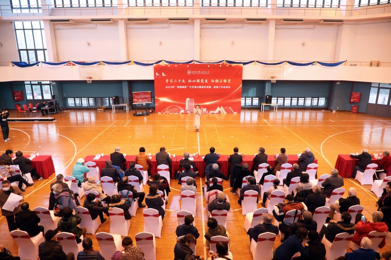 12月27日上午,党委离退休工作部(退休工作处)在长宁校区综合楼篮球馆召开“学习二十大,红心跟党走,弘扬正能量”2023年程园雅韵文艺演出暨退休党建、退管工作总结会。校党委副书记史健勇,退休局级老领导曹伟武书记,校老教授协会会长、关工委副主任夏斯云,校关工委副主任、老教授协会副会长陈力华,离退休工作部部长孙文钧,党委组织部老干部办副主任赵雷,离退休工作部副部长张漪,退休教工党委委员,校关工委委员,离退休教工党支部书记和支委委员,退休教工块组长,社团负责人及老同志代表参加了会议。党委离退休工作部组织员吴薇薇主持会议。