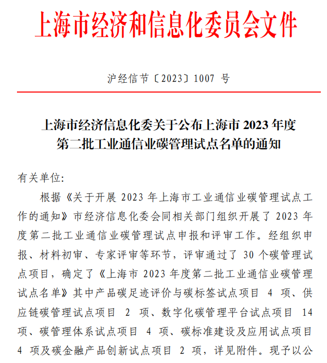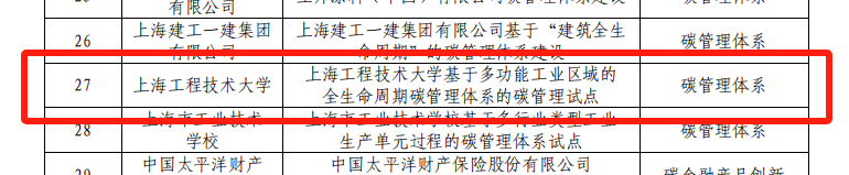 近日,我校申报的“基于多功能工业区域的全生命周期碳管理体系的碳管理试点”项目成功获批上海市经济和信息化委员会上海市2023年度第二批工业通信业碳管理试点单位。