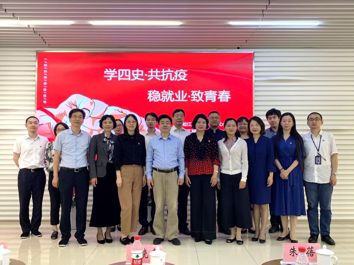 为推动党史、新中国史、改革开放史、社会主义发展史学习,以“四史”学习教育涵养初心使命,更好地落实习近平总书记关于做好“六稳”工作、落实“六保”任务的要求,共同构建就业共同体,全力以赴做好应对疫情稳就业工作。5月25日下午,学生处党支部赴松江区就业促进中心开展“学四史•共抗疫•稳就业•致青春”主题党日联组学习活动。校党委副书记、副校长朱晓青,松江区人力资源和社会保障局党组书记、局长沈冬林出席活动,学生处党支部、松江区就业促进中心党支部、团支部党员、团员参加了学习。