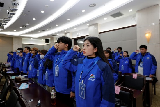 在志愿者代表刘丹蕊同学的领誓下,参会志愿者进行了出征宣誓,许下了做好上工程代言人的铮铮誓言。