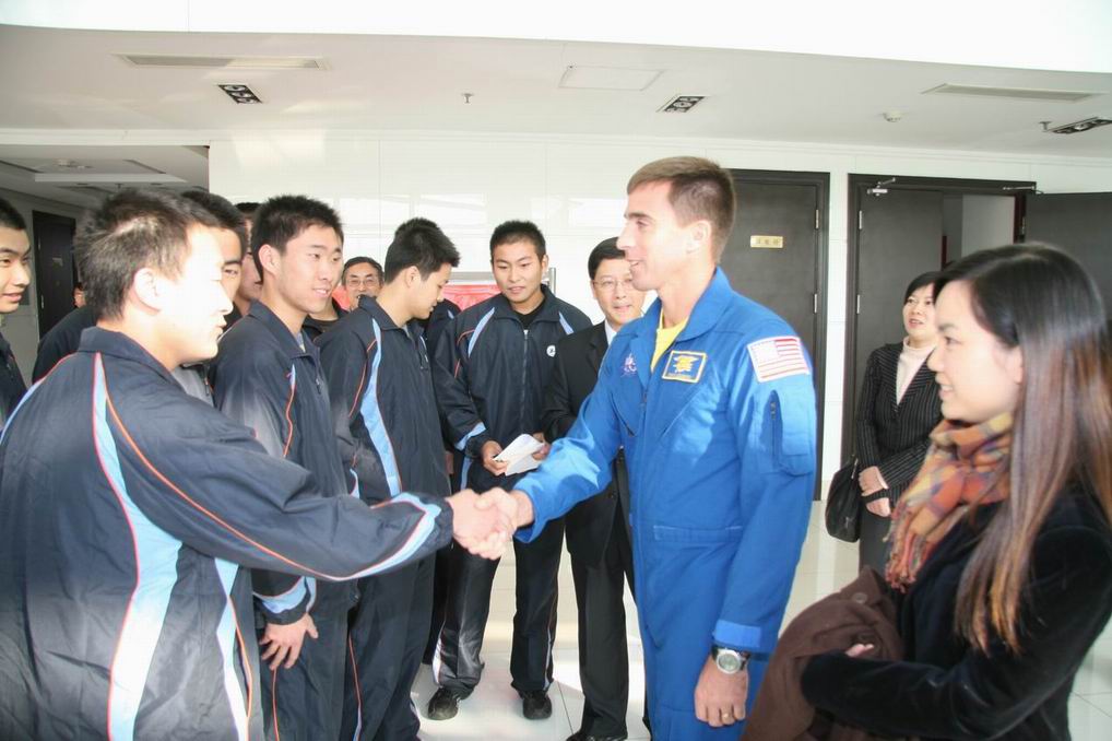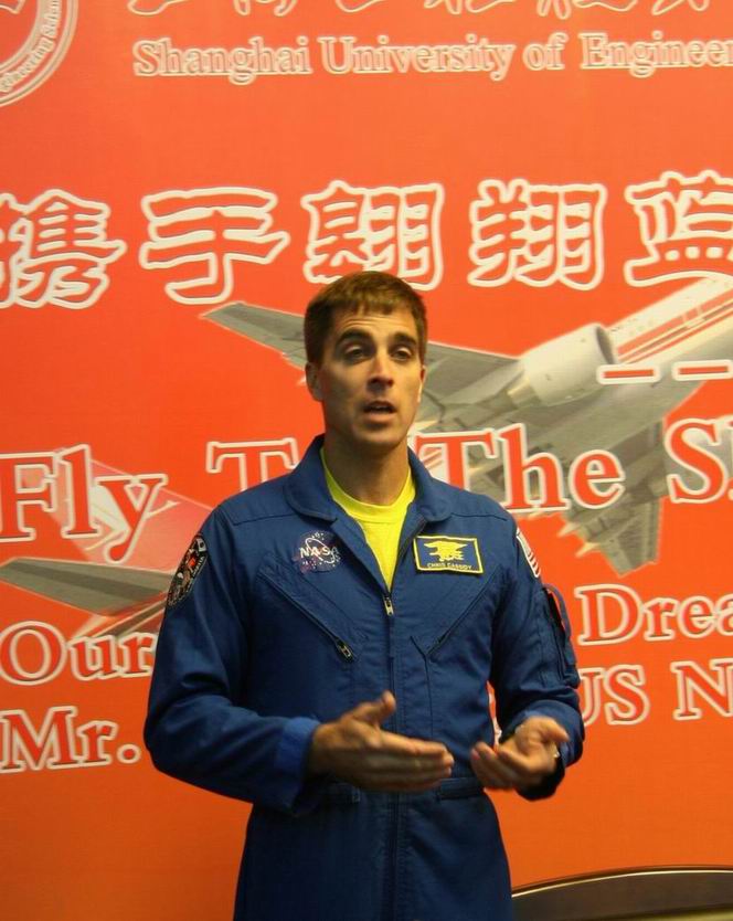 11月28日,美国海军少校、美国航天宇航局后备宇航员克里斯托夫-卡西德在美国领事馆文化处的陪同下,访问了上海工程技术大学。克里斯托夫-卡西德少校曾在美国海军海豹特战队服役十年,专业范围包括:长距离特别侦查、巷战直接突击、战时非正常登船、沙漠侦查巡逻、作战潜水、水下爆破以及一系列空中作战科目,包括跳伞、快速尤绳、绳索下降等。四次被派遣到国外执行军事任务,分赴阿富汗和地中海地区。同时作为志愿者,克里斯托夫-卡西德少校还参加了180公里的划独木舟比赛,这是一次慈善活动,旨在向社会宣传“特别行动战士基金会”,并募集捐款。2004年5月入选美国航天宇航局。2006年2月完成宇航员候选人训练科目,其中包括科学和技术方面的培训,以及在航天飞机和航天飞行方面的强化训练、国际空间站系统、心里训练、T-38“禽爪”型飞机飞行训练、野外生存训练,成长为一名优秀的宇航员。  上午9:30,上海工程技术大学校长副校长程维明等领导热情迎接了克里斯托夫-卡西德少校一行,并参观了整个校区及实训中心多个实验室。随后,克里斯托夫-卡西德少校与飞行学院全体学员进行了座谈。会议由飞行学院执行院长魏建主持,参加会议的有飞行学院常务副院长徐宝纲及飞行学院部分教师代表。飞行学员们怀着敬仰的心情,聆听了克里斯托夫-卡西德少校关于如何成长为一名优秀宇航员的讲座。他鼓励每位飞行学员们在任何时候都不要放弃自己的梦想,要坚定自己翱翔蓝天的信念。每个人都会经历很多困难,但只要有自信,并且坚持努力,就能完成任务实现梦想。 学员们在听完克里斯托夫-卡西德少校的关于如何成为一名宇航员的话后,感触良多,纷纷向他提问。有学员问到:“在宇航员训练时,会遇到什么困难,您又是如何克服的呢?”克里斯托夫-卡西德少校回答到:“在模拟太空舱里面遇到的其中一个困难是必须控制好自己的动作和身体协调性。如果开始向某一方向移动,直到摸到另外一个固体才能停下来。在失重的情况下,要控制好自己的身体需要反复练习,常常会撞的青一块紫一块。所以要心平气和慢慢的移动,协调好身体每个部分。”又有学员问道:“训练中常常会有身体的不适应,应该怎么办?”“强度训练一开始总是非常艰苦的,身体上出现的不适应和心理上的波动情况,要很好的与指导老师沟通。同时,一步步调整训练节奏,适应整个训练过程。不仅是对身体的训练,更是考验自己的意志。昨天早上,我还绕着外滩进行了长跑训练。上海的外滩实在是太美丽了。”学员们对克里斯托夫-卡西德少校从一个军人转变成一名宇航员十分感兴趣,克里斯托夫-卡西德少校告诉学员们,因为他小时候就十分感兴趣宇宙的奥秘。从军的经历更是为他今后把握机会成为宇航员打下来一定的基础。还有学员问道:“少校会不会支持自己的孩子也去实现遨游蓝天的梦想?” 克里斯托夫-卡西德少校笑容满面地说:“当我第一天去NASA上班回来后,5岁的儿子兴冲冲问我是不是已经去过月球了。我想每个孩子都会对浩瀚的星空产生奇妙的幻想,保有好奇心。未来是一个高科技发达的时代,我当然支持自己的孩子怀揣遨游蓝天的梦想,并为此努力!” 见面会结束时,学员们簇拥在克里斯托夫-卡西德少校周围,请他签名并合影留念。飞行学员们纷纷表示,能零距离和宇航员进行沟通和接触,颇受鼓舞,同时也深感肩负的责任重大,还需要加倍努力,才能真正实现翱翔蓝天的梦想,为祖国的航天实现贡献自己的力量。 座谈会后,上海工程技术大学校长汪泓会见了克里斯托夫-卡西德少校,并对他此次来访我校与飞行学员们进行零距离沟通表达了衷心的感谢,希望他有机会的话再来学校与飞行学员们进行沟通交流。 新闻办 |