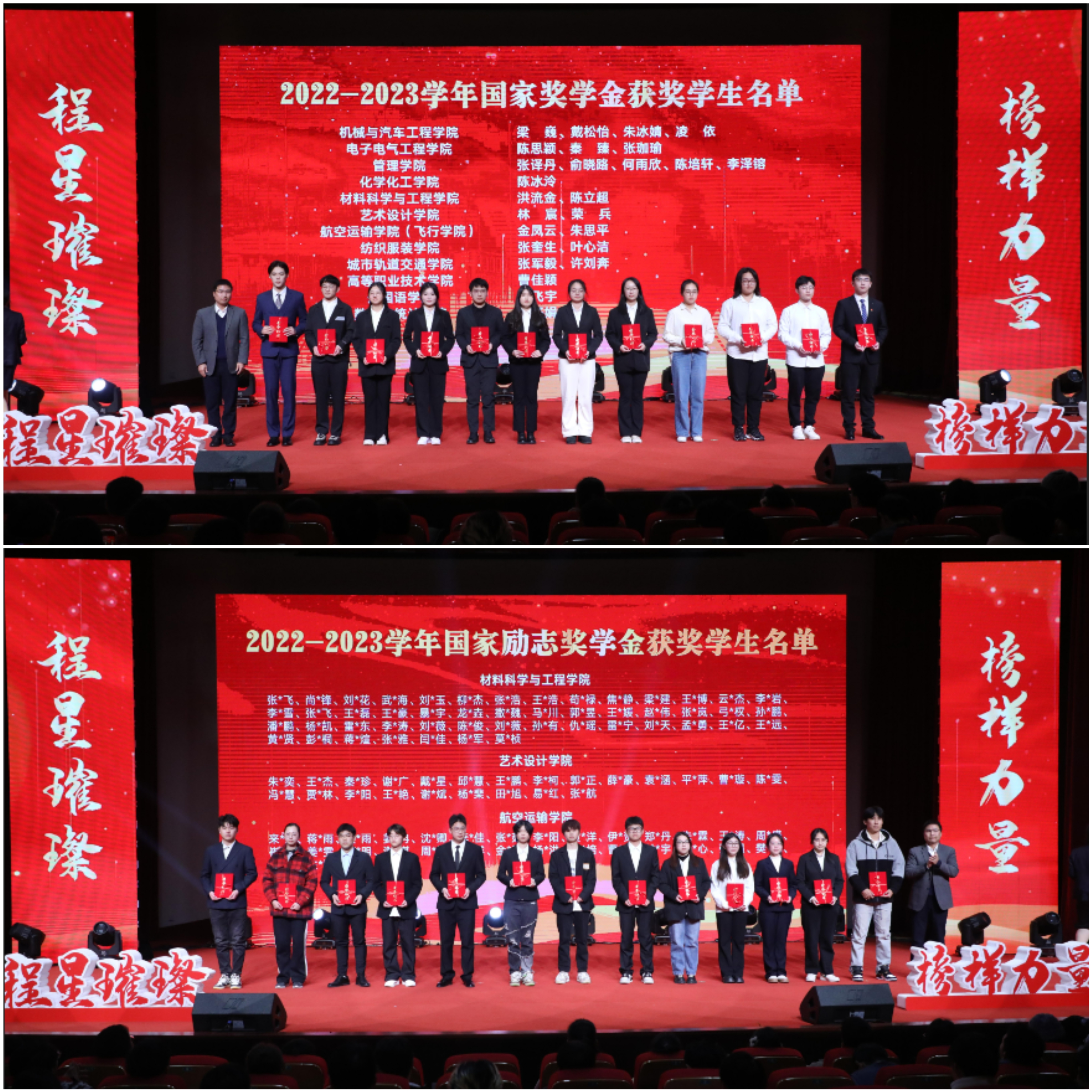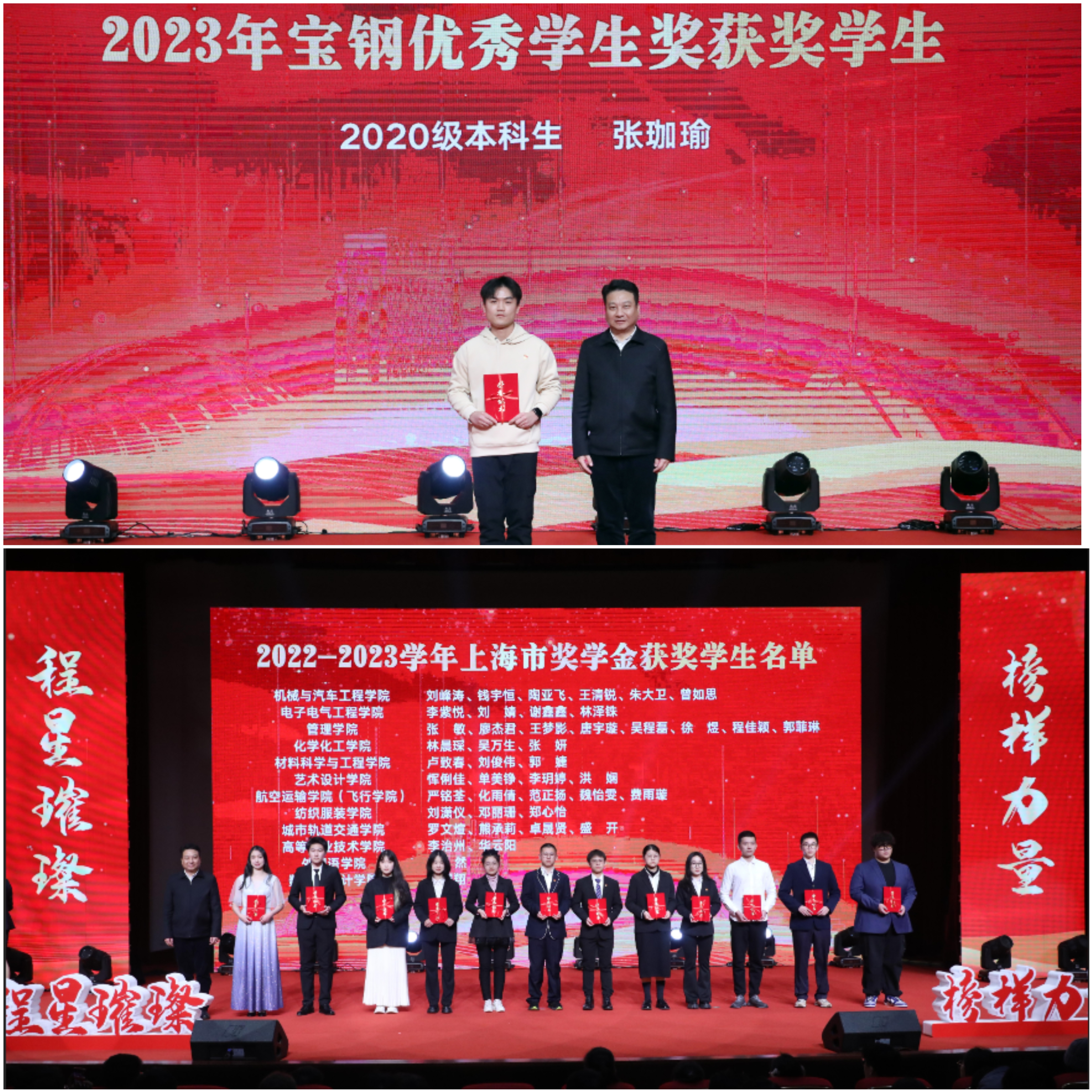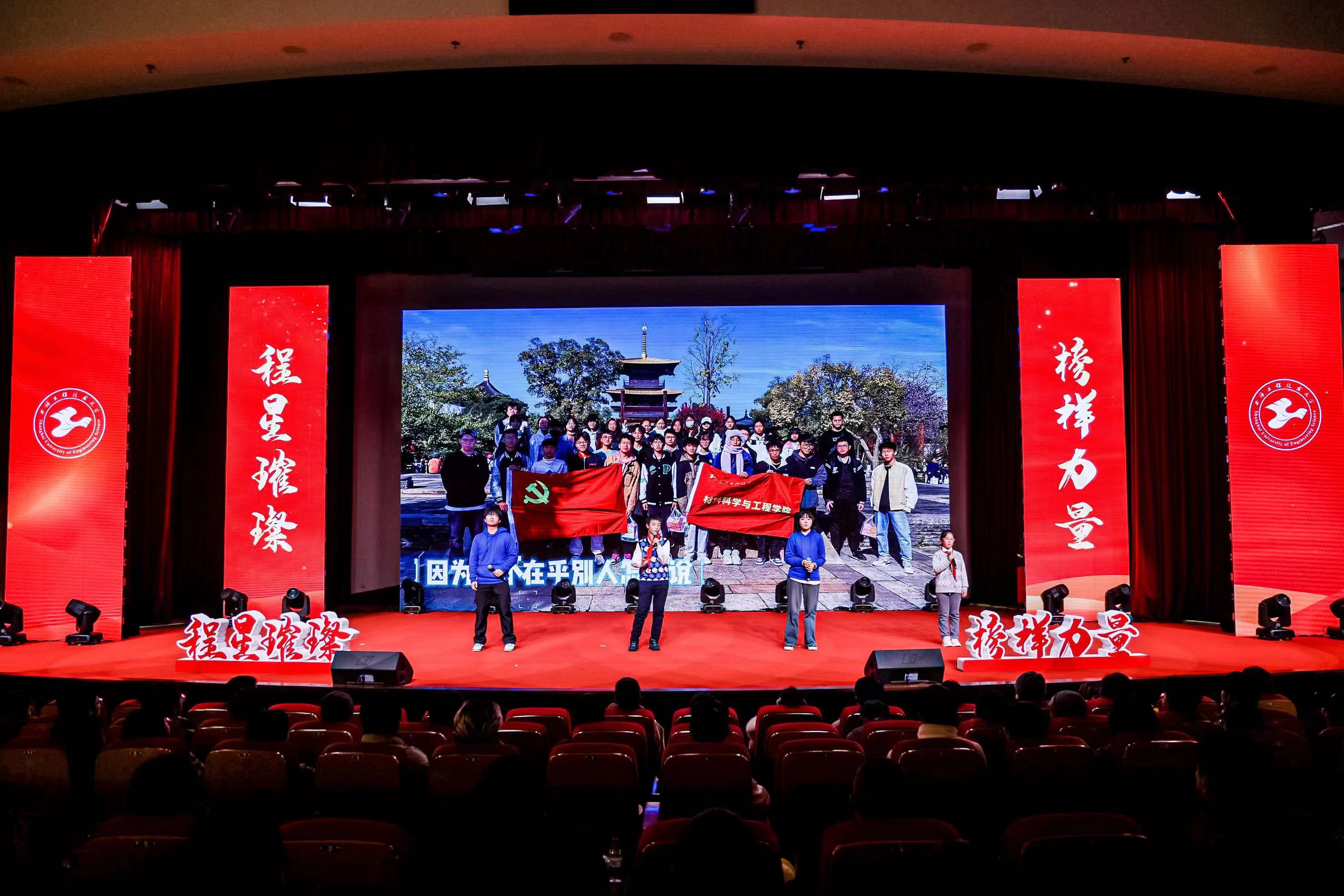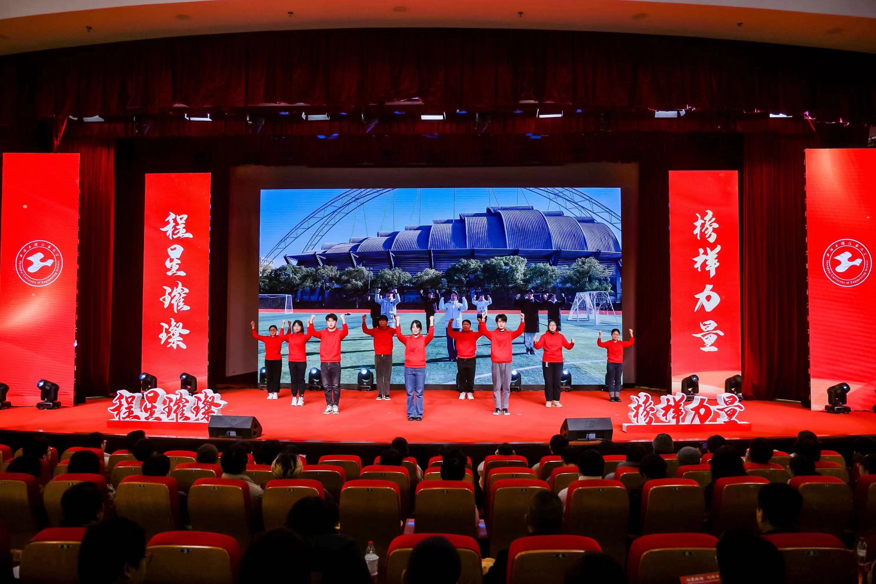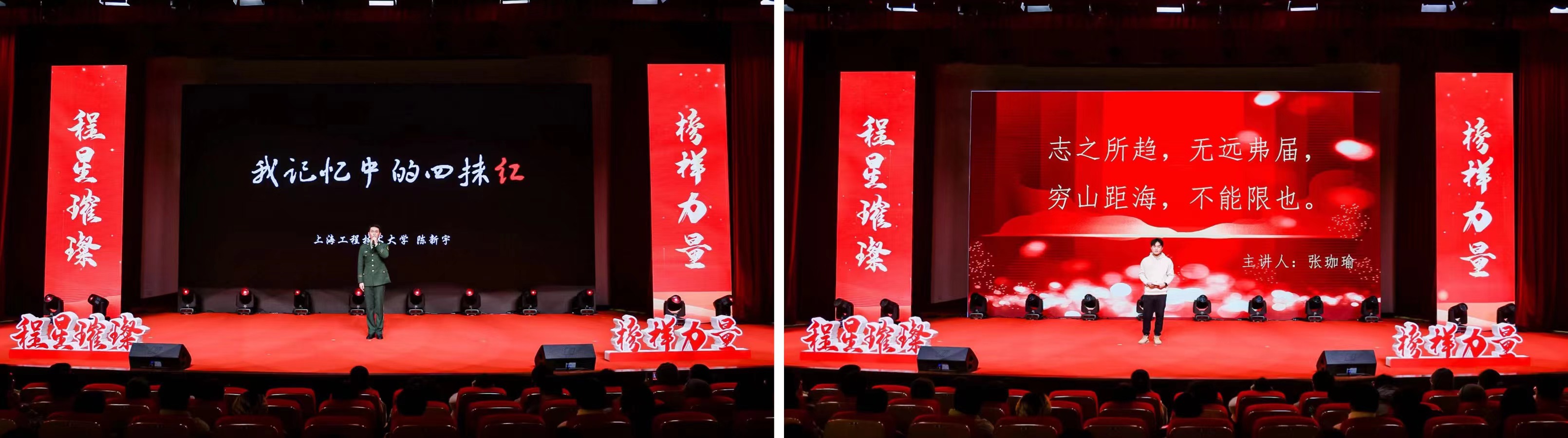 在“星光领航”篇章,由2023年兵役资助受助学生代表、2023年“谁的青春不奋斗”故事讲演大赛获奖者陈新宇带来情景讲述《我记忆中的四抹红》,2023年宝钢教育奖(优秀学生奖)获得者张珈瑜激情演讲《志之所趋,无远弗届》,气氛热烈,催人奋进。新时代呼唤新作为,新青年要有新担当,上工程学子必将坚定钢铁信念、淬炼钢筋铁骨、争做钢铁脊梁,努力成长为堪当民族复兴大任的时代新人。