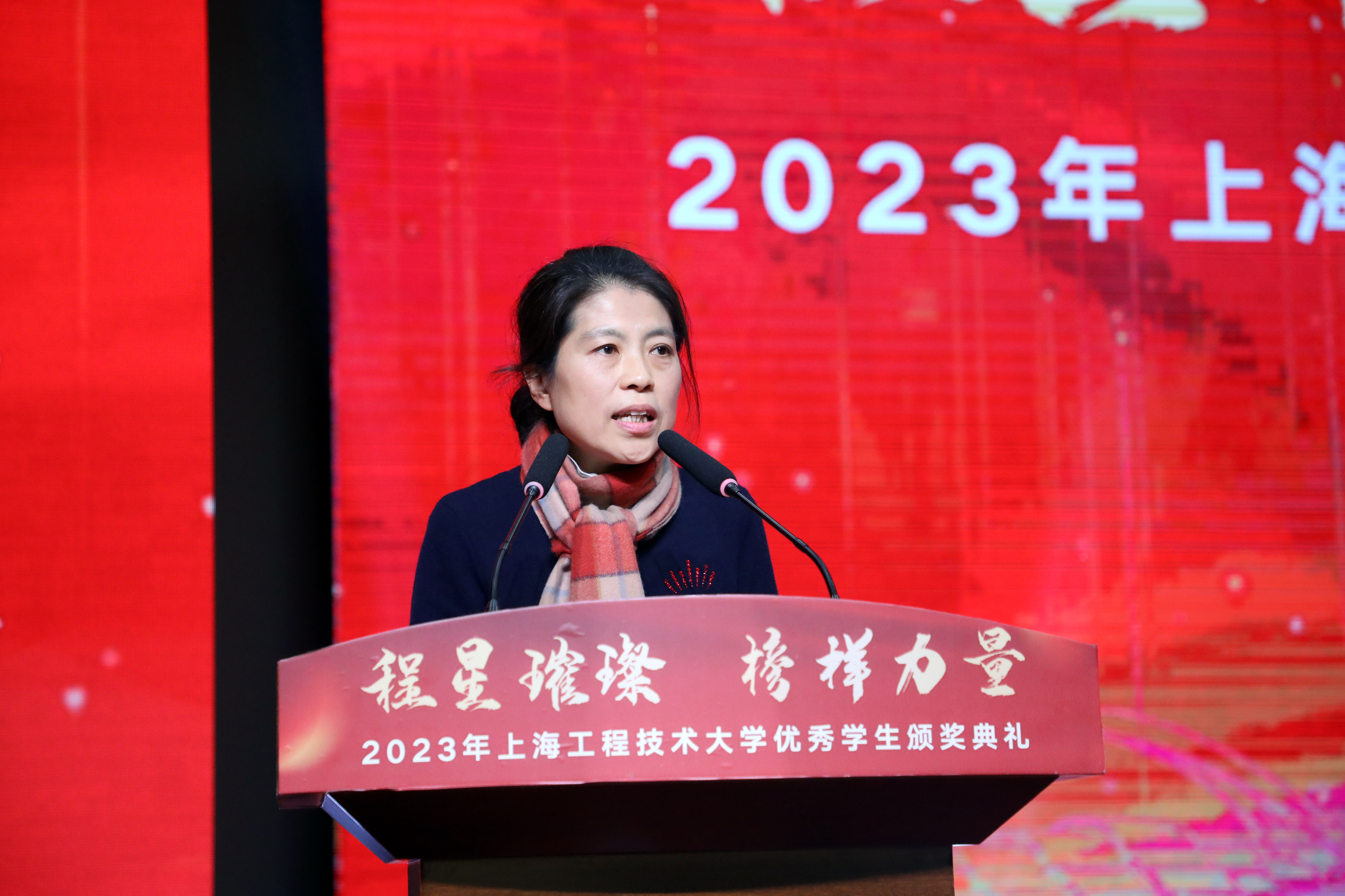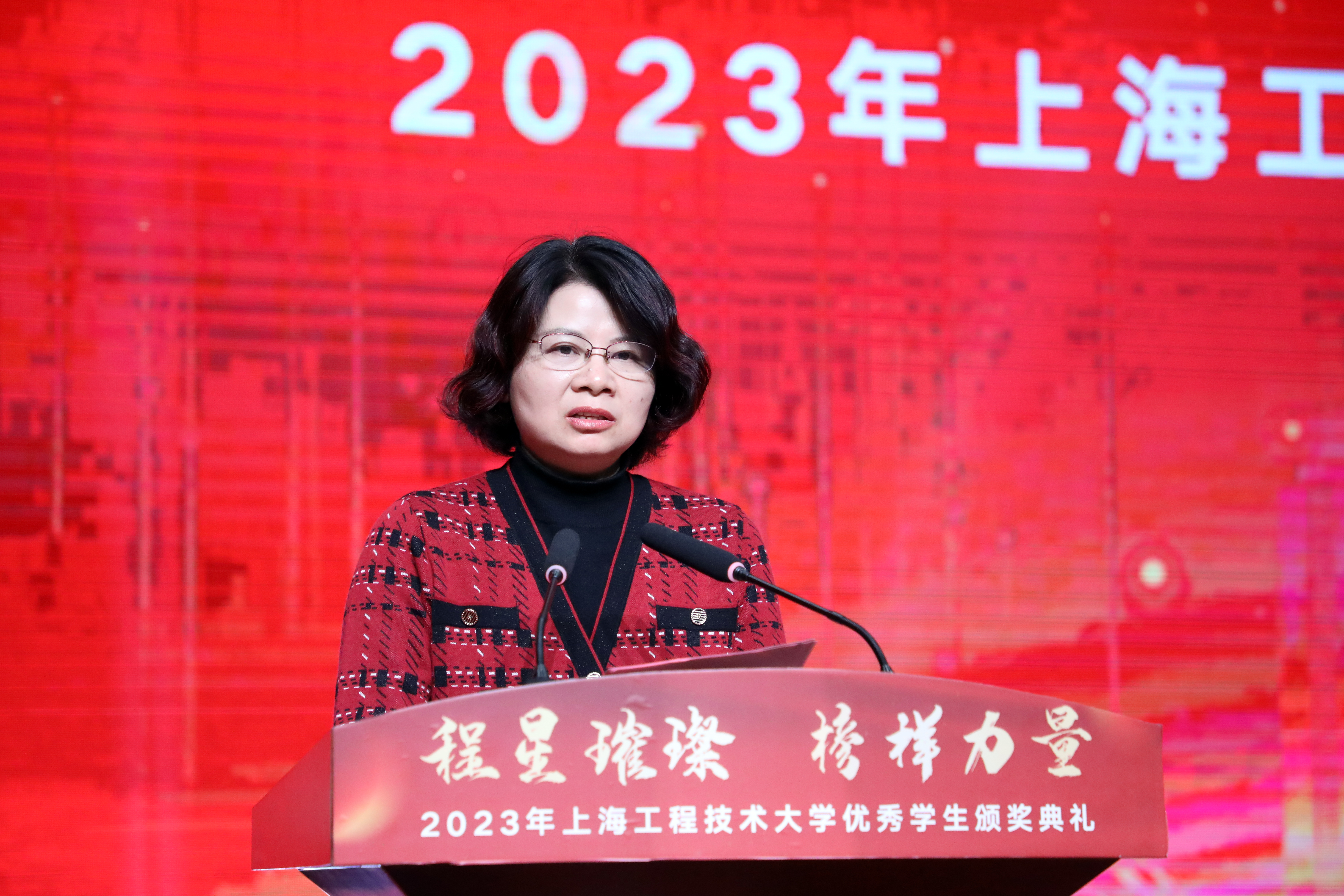 为全面贯彻落实党的二十大精神,宣传新时代大学生先进典型,充分发挥榜样引领作用。12月29日下午,“程星璀璨,榜样力量”2023年上海工程技术大学优秀学生颁奖典礼在松江校区第一图文信息中心志宏堂顺利举行。校党委副书记、副校长朱晓青,校党委常委、组织部部长朱洪春,校党委常委、宣传部部长徐阳出席典礼。上海市教委学生处一级调研员赵靖茹、上海市学生事务中心副主任王涛、上海市学生事务中心资助管理部部长葛民和上海工程技术大学附属松江泗泾实验学校校长季国栋受邀参加典礼。校学生工作部(处)、研究生工作部、教务处、研究生处和财务处等相关职能部门负责人,各学院党委副书记、获奖师生代表以及全体资助辅导员等参加典礼。