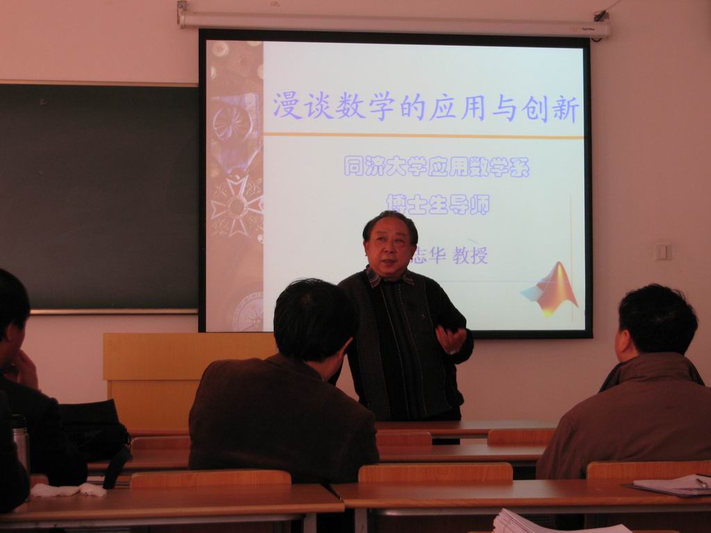 11月27号下午,基础教学学院数学教学部举办了一次学术讲座。邀请了同济大学博士生导师陈志华教授做了题为《漫谈数学的应用与创新》的讲座。陈教授首先介绍了国内外数学发展的动态,提出了一些前沿的数学课题让我们去思考和探究。在谈到数学的应用和创新这个问题上,陈教授指出数学研究不能只停留在理论上,还应该与生产实践结合起来。做数学研究要坚持不懈,要善于思索,要经常和同行交流,这些都是数学创新的基础。此外,陈教授分析了教学与科研之间的关系,认为两者相辅相成,缺一不可。讲座的尾声,陈教授与在座的教师进行了交流,回答了教师们在数学研究与教学过程中遇到的疑惑,鼓励我们对数学的研究要充满信心。 最后,数学教学部 | |