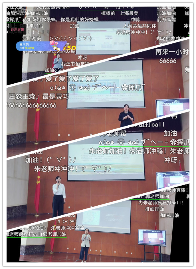 同学们纷纷通过网络向自己喜爱的辅导员和精彩的形势与政策课进刷屏支持。在将近2小时的直播中,热度刷爆,“花姐”、“淼姐”、“彬哥”的精彩表现征服了屏幕对面万千学子的心。观看了网络直播的管理学院杜露同学表示虽然不能回到学校,但线上这场精彩的形势与政策课给人的感染力和知识点都是极其丰富的,老师们的魅力深深地吸引了我,课程的精彩内容和弹幕让人停不下来。艺术设计学院张菁依同学表示,形势与政策课采用了线上直播的形式,很新奇。老师们所讲的内容也很贴近学生,从中学习了“四史”,更加明确了大学生应承担的责任和使命。