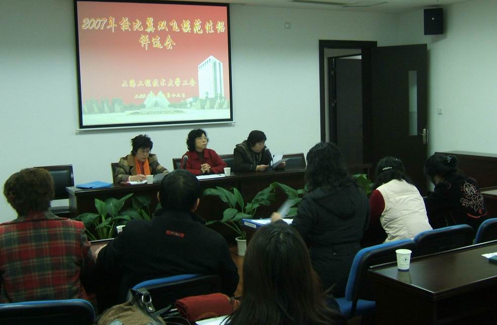 按照沪科教工[2007]23号文和沪工程工会[2007]34号文件精神,校工会于11月上旬召开了女工委会议,部署了2007年度校比翼双飞模范佳侣评选工作,至截止时间已收到部门推荐候选人十对夫妇。遵照有关评选条件,经候选人所在部门女工委员对其先进事迹的介绍和全体与会评委的无记名投票选举,会议评选出6对比翼双飞模范佳侣,他们是(按得票多少顺序排列): 沈海庆、刘勤夫妇/张瑜、何俊民夫妇/陈敏、赵祖欣夫妇/张玫欣、于治水夫妇/钱慧敏、马子彦夫妇/徐萍、马康毅夫妇 会议还高票推选出沈海庆、刘勤夫妇为我校参加2007年度上海市科教系统比翼双飞模范佳侣评选候选人。