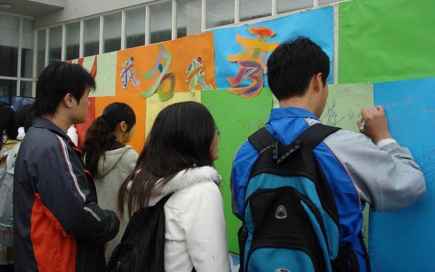 继 尽管下着蒙蒙细雨,前来参加活动的同学依然络绎不绝。同学们都热情地在七彩的底板上留下了自己的个性签名。这些签名或飘逸随性,或端正整洁,或龙飞凤舞,各有千秋的签名展现了中国的文字魅力。 这次金色童年的一系列活动吸引了很多同学。参加活动的同学们也一定在其中念起童年时那段珍贵纯真的金色回忆。 学生通讯员:徐志霏 | |