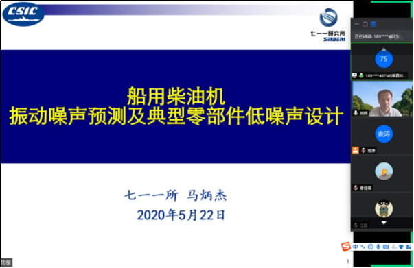 5月22日上午,应机械与汽车工程学院和上海市新能源汽车振动噪声测试与控制专业技术服务平台邀请,中国船舶集团有限公司第七一一所马炳杰研究员做了题为《船用柴油机振动噪声预测及典型部件低噪声设计》的视频学术报告,并就研究生提出的学术问题,进行了细致解答和交流。