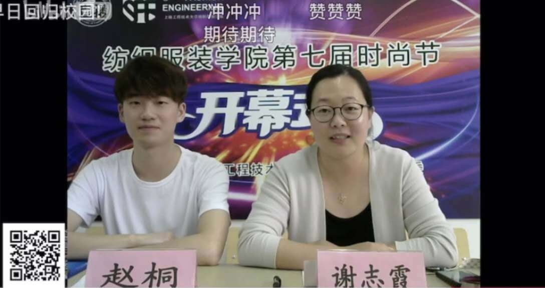 纺织服装学院党委书记朱君璇老师通过视频的方式向因为疫情无法返校的学子致以关心与问候。她希望各位同学能在本次活动中发挥创新精神,展现我院学生在服装的文化传承、设计理念等方面的独到品位,每一位工程大学子能在这次时尚节中,展示出自己的风采,共同打造一场极具特色的文化盛宴。