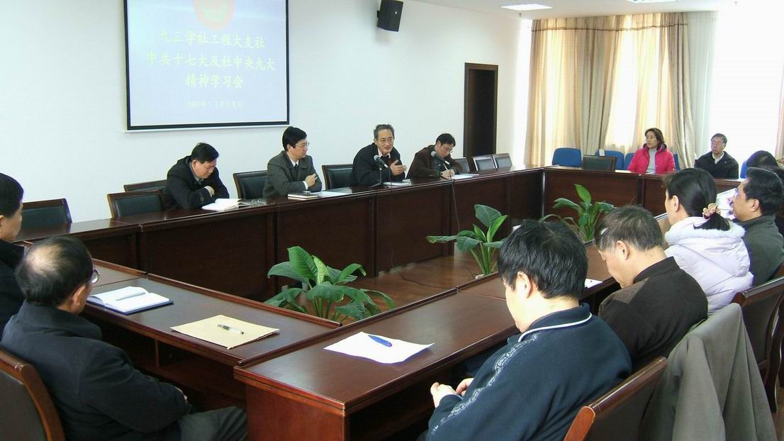 |  2007年12月28日,九三学社上海工程技术大学支社举办“九三学社工程大支社中共十七大及社中央九大精神学习会”。会议由支社主委徐滕岗主持,支社在职社员参加了学习。学校党委书记曹伟武同志到会讲话。曹书记又一次向与会社员解读了胡锦涛总书记在中共十七大的报告,要求民主党派的成员要认真学习党的方针政策,特别是十七大精神;九三的同志对自己应当有更高的要求,要联系实际,在学校的发展中进一步发挥作用。党委副书记田信灿同志在讲话中指出,我校目前抓内涵建设,人才是关键,希望九三的同志围绕学校发展献计献策。副校长、九三市委副主委、新当选的九三中央委员程维明教授介绍了九三中央第九次全国代表大会精神及上海市委全委会的会议精神。 张学山 |