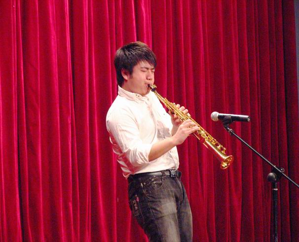 当大家还沉浸在浓郁的民族风情中时,《What you own》及《回家》二曲又展现了独特的现代风情,令人耳目一新。此外,上海音乐学院还特意为我们准备了爵士 紧接着的经典声乐曲目《我的太阳》,女主持突然请出了我校电子电气工程学院的学生陈笑,两校学生同台表演,晚会再次掀起高潮,台下掌声连连。最后,一曲《饮酒歌》为整台音乐会画上了圆满的句号。 高雅艺术进校园活动由我校学生处主办,是校艺术教育的重要活动之一。“每月一台戏”不仅丰富了大学生的课余生活,更扩大了大家的艺术眼界,具有深刻的意义。 “每月一台戏”将会在学校及学生们的支持下,以更多样、高质量的演出回馈全校师生。 吴薇薇 | |