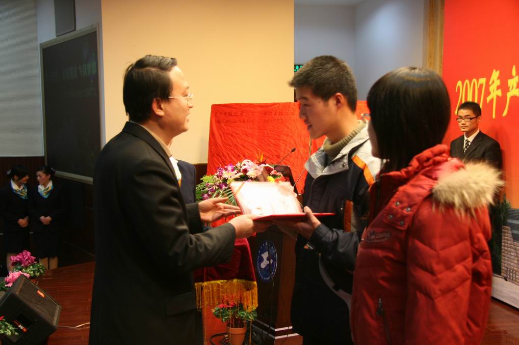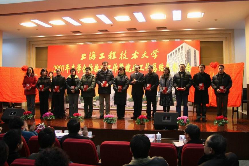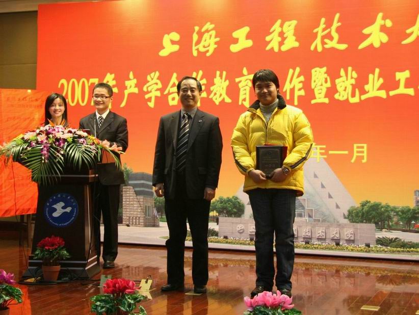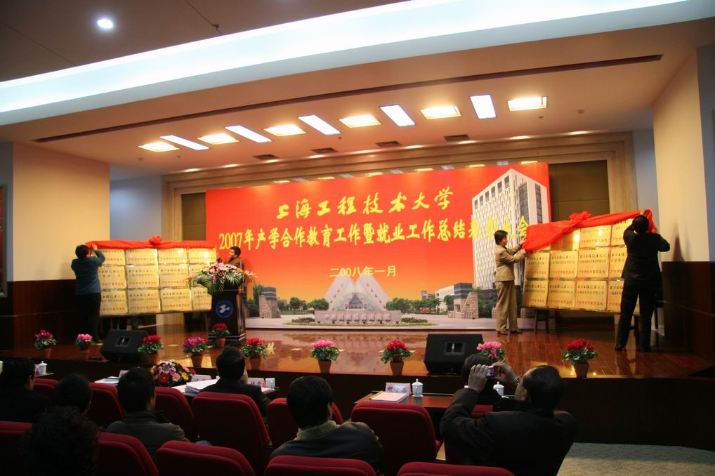 |  青春的花朵在这里绽放,动人的诗篇在这里展开,2007年上海工程技术大学产学合作教育工作与就业工作取得了丰硕的成果。1月15日下午14:00时,2007年产学合作教育工作暨就业工作总结表彰大会在松江校区图文信息中心第二报告厅举行。校长汪泓,副校长郝建平、孙培雷、陈力华,教务处鲁嘉华处长,学生处王明复处长,各学院党政领导出席了会议。 近40家用人企业走进上海工程技术大学松江校区,作为学校基地代表参加此次大会,部分合作教育学生家长也来到现场见证这一时刻。大会上表彰了上海市高校就业和职业发展教育工作先进个人盛知恒、金鑫,授予张志英等32名教师上海工程技术大学2007年就业工作先进个人的光荣称号,授予机械工程学院2007年产学合作教育基地建设优秀奖,授予高锡文等25名教师合作教育基地建设先进工作者称号,对杨慧斌等49名优秀协调员、管经纬等242名优秀学员和邓陆平等393名优秀业务报告作者予以表彰。