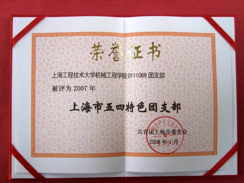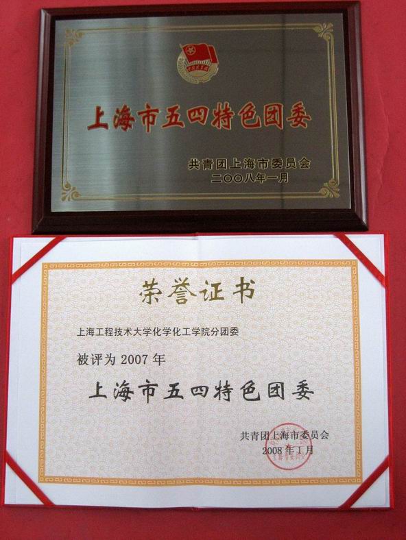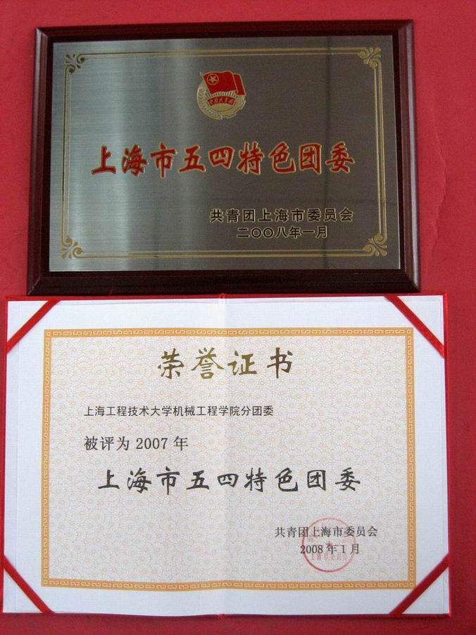 经校团委广泛发动,认真部署,各学院分团委围绕工作中的重点、难点和特色,按照团市委“争红旗,创特色”活动的评选标准踊跃创建特色团委,在与上海市兄弟高校的互评互访活动中,得到了肯定和认可,取得了良好的成绩。 经评比,我校机械工程学院分团委和化学化工学院分团委获共青团上海市委员授予的“上海市五四特色团委”称号,机械工程学院0111069班获共青团上海市委员授予的“上海市五四特色团支部”称号。