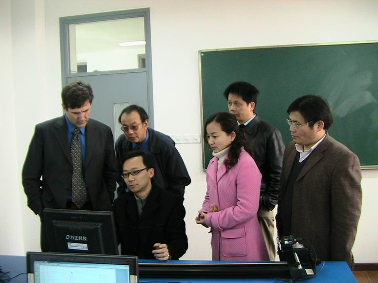 外国专家在参观实验室的同时还不时询问教学情况,在听取我校物理实验教学改革的情况、60余项的选择性实验课程设置、学生自选实验相关题目撰写论文并进行优良等级答辩等具有鲜明特色的教学理念后,给予了这些成果充分地肯定和高度的评价。在与教师交流的过程中,专家介绍了国外物理实验发展的新思路,以及一些近代实验的设备。两个多小时的交流使得宾主双方均感获益匪浅,一致表示将来应当进一步增进交流合作。