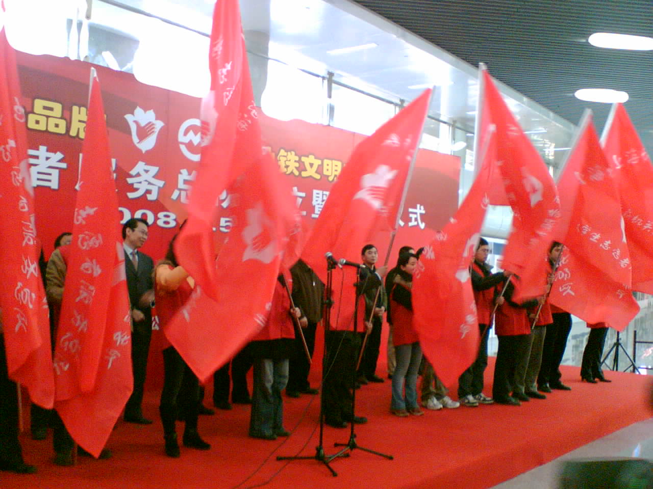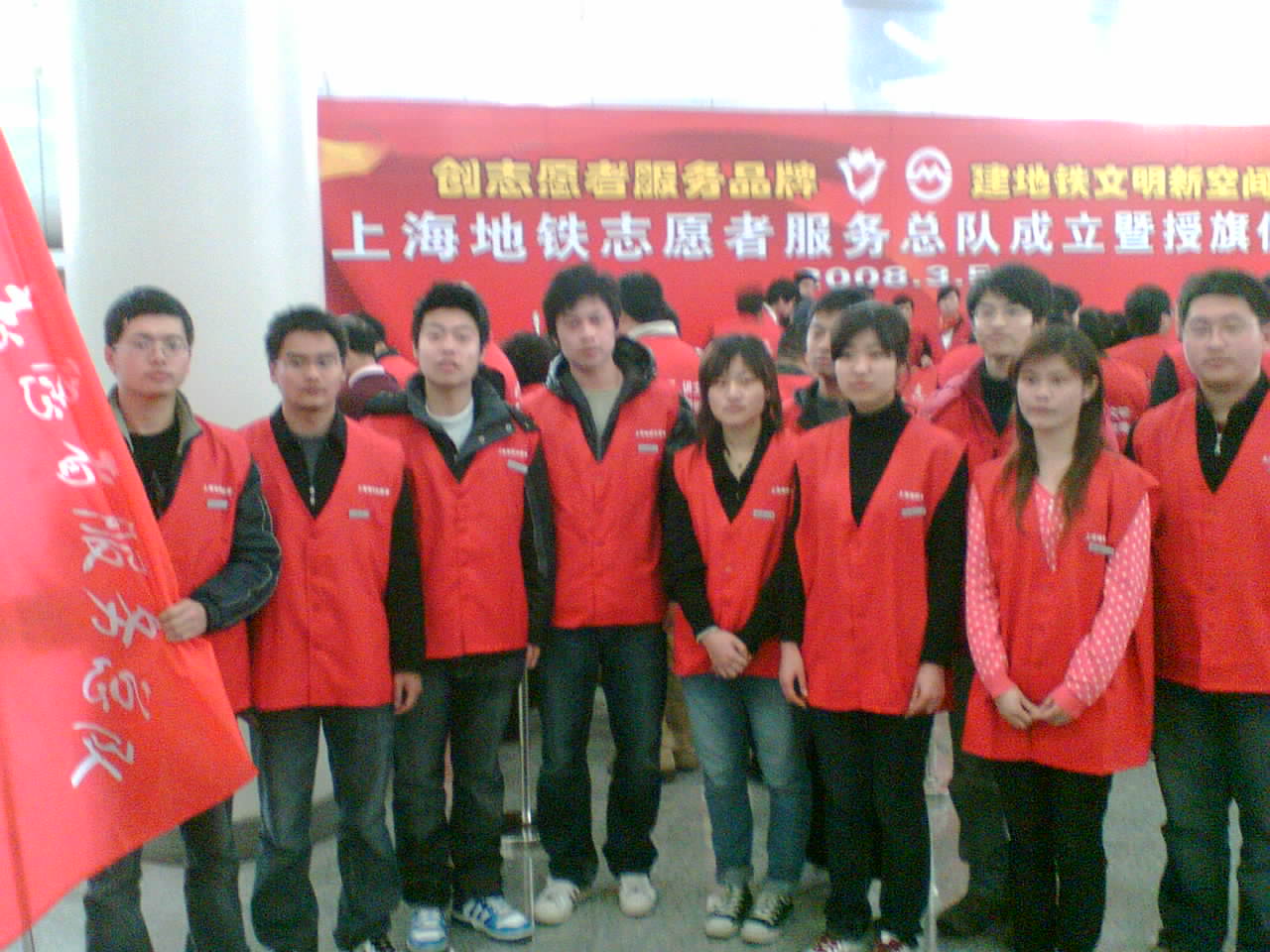 学院志愿者部部长、地铁志愿者活动负责人朱清同学在授旗仪式上从市文明办等领导的手中接过了印有“大学生地铁志愿者服务队”的旗帜,并在授旗仪式结束后与1011052班、1013062班的10名志愿者一起开展了地铁志愿服务。
