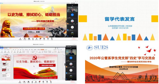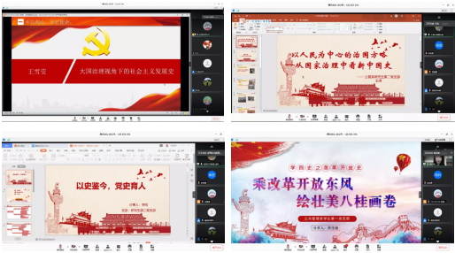 优秀党员学习分享了“四史”。“四史”浩繁,印刻着中国共产党人的初心使命与艰辛探索。从中汲取精神力量,推动解决实际问题,增强百姓安全感、获得感与幸福感,是开展“四史”学习教育的出发点,也是检验成效的“试金石”。四位研究生党员王雪莹、高婷婷、王琳、李昀分别从党史、新中国史、改革开放史、社会主义发展史进行学习分享;本科生党员黄佳婕则将家乡南宁的发展和“四史”发展结合起来,阐述改革开放以来家乡的巨大变化。