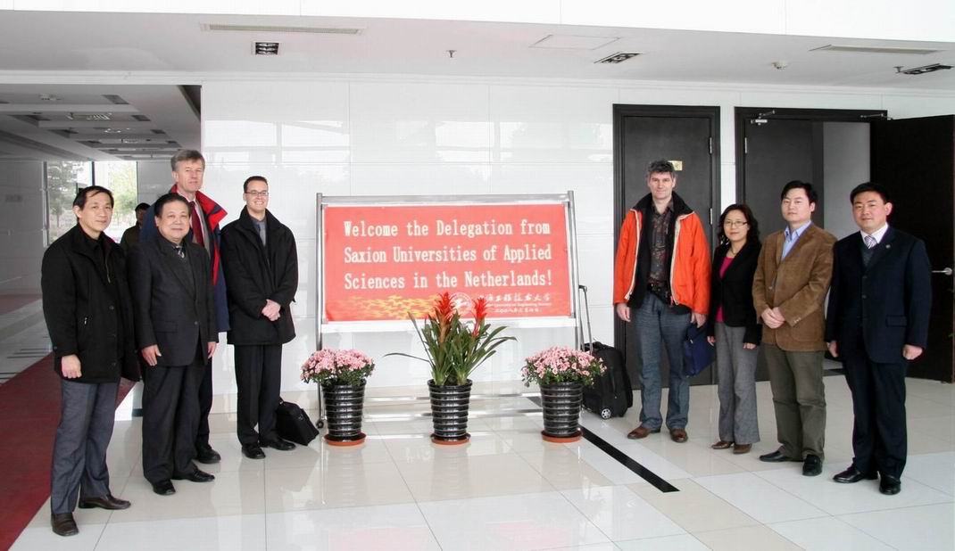 3 月7日汪校长建议两校先从专业、学科交流、项目合作、教师互访和学生互换上开展合作,同时双方还应积极探索更全面、更深入的合作。双方一致认为两校可以从艺术设计的几个专业开始交流合作。 会谈前,客人在我校国际交流处负责人的陪同下参观了行政楼19楼、实训中心、图书馆、艺术楼等,对我校优美的校园环境及优良的教学设施备加称赞。 萨克逊大学位于荷兰东部,学生总计2**, 教职工1500多人, 有来自50多个国家500多名留学生。该校规模在荷兰高校中位居第四,教学质量在荷兰名列前茅,曾多次获得教育质量奖。
