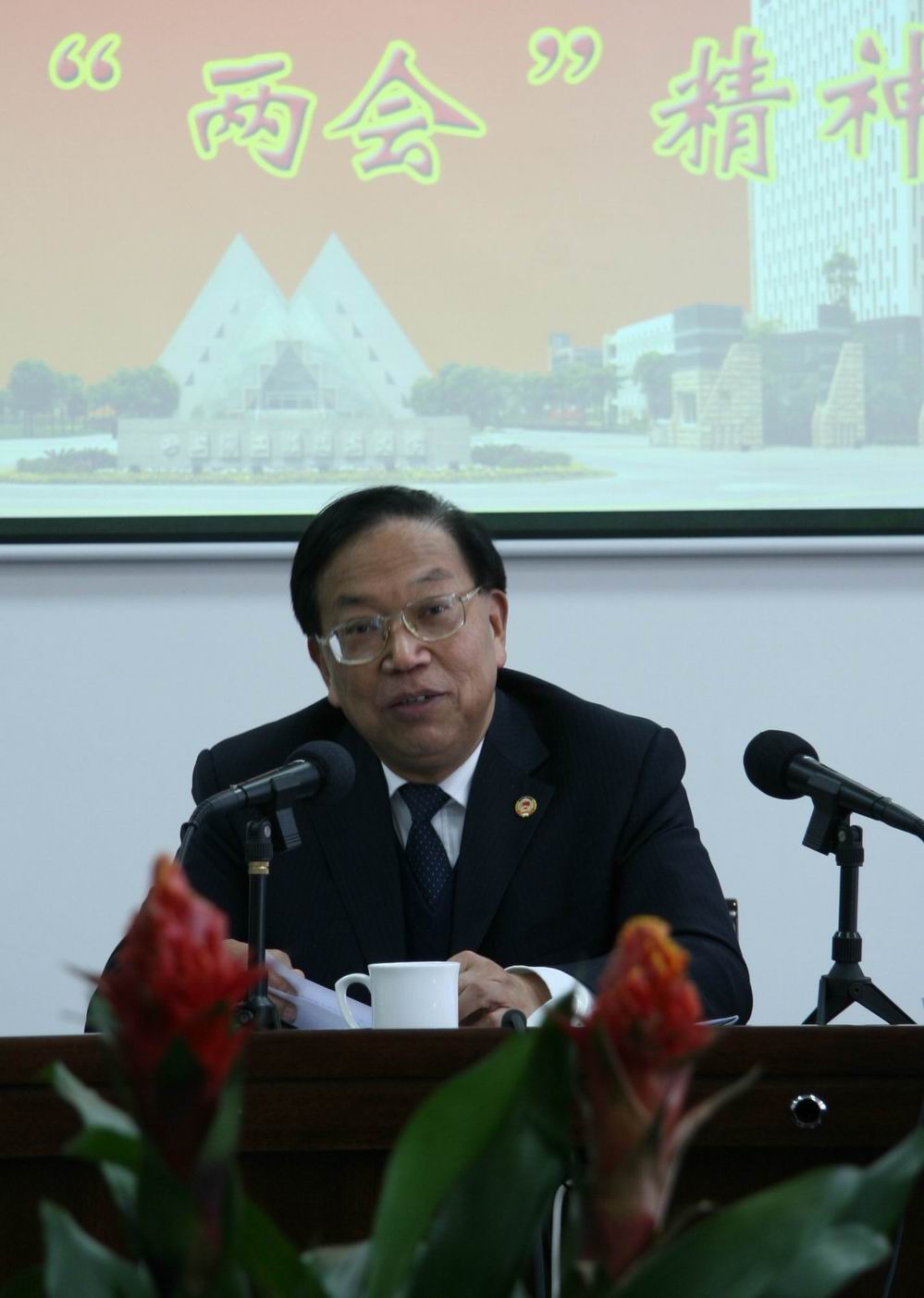 校长汪泓和副校长孙培雷作了中心组发言准备。校长汪泓用“新、大、实、高” 全国政协常委蒋以任参加了中心组学习,并就参加“两会”的切身体会进行了发言。他从时代要求和社会反响等方面说明全国“两会”备受关注,对从世情、国情、党情的形势中把握“两会”的民生主题,把握科学发展与和谐社会的要义进行了阐述,并就以“两会”精神指导,推动事业发展、建设和谐校园谈了看法。