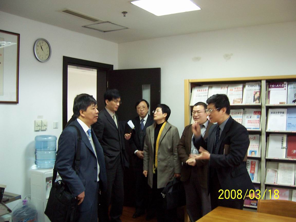 3月18日 ,受上海市学位办、上海市教育评估院的委托,上海市研究生培养过程质量检查专家组一行对我校硕士专业学位研究生培养质量进行现场检查。18 日上午在听取了程维明副校长的精彩汇报后,专家组一行首先来到了行政楼7楼,在管理学院常务副院长王裕明、主管研究生工作副院长吴忠的陪同下,专家组分别参观了我校社会保障资料中心、社会保障研究中心和社会保障工作室。专家们饶有兴趣的参观了社会保障中心承接的上海市科委科技攻关项目《基金良性运营的控制系统研发》的软件成果演示。专家组对我校社会保障专业资料中心拥有的大量图书期刊资源,社会保障中心承接的国家级、市级重点项目和丰富成果留下了深刻印象。对我校社会保障专业硕士点以学科发展带动硕士点发展,将硕士生培养融入到重点学科建设中的模式深表赞同。 图1 专家组在参观社会保障资料室 图2 专家组在参观我校社会保障研究中心丰富的科研成果 图3 专家组在参观基金良性运营的控制系统的软件演示 王宇熹 稿件作者:王宇熹责任编辑:陈文琼