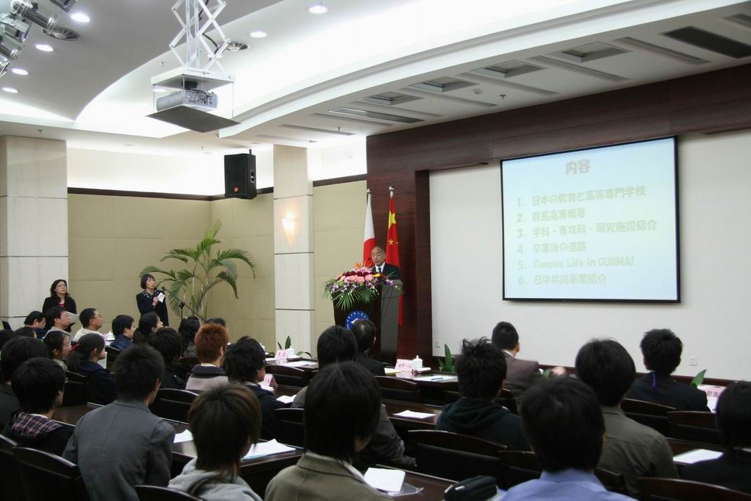 交流会上,中日双方的学生代表分别对各国的文化、习俗、名胜等进行了详细的介绍。我方学生代表不仅介绍了中国文化,还介绍了上海近几年的发展状况,又详细介绍了上海的特色美食,引得中日双方学生赞叹不已。日方学生代表则以分组形式颇有新意的向我们介绍了日本的名胜古迹、学校生活及动漫画家等内容,使得交流会气氛异常活跃。 在本次交流会上,中日双方还就教育问题展开了讨论。日方教师代表向我们详尽地阐述了日本学校的教育体制,从中我们看到了中日两国教育制度的差异,也意识到双方的交流学习的必要性,这些都将进一步促进双方的发展。 交流会最后,双方学生代表友好的进行合影留念。校办主任、国际交流处处长