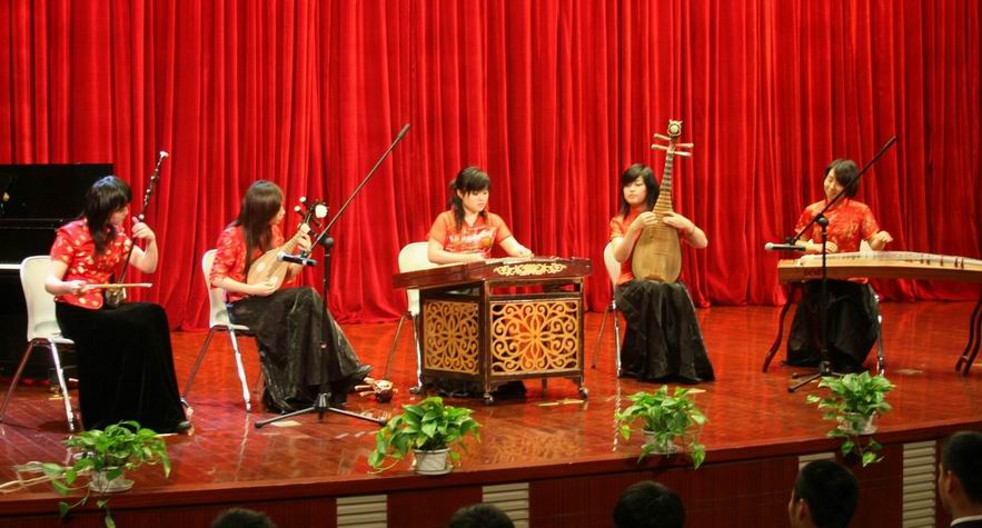 |  3月27日晚18:00,每月一台戏—“上航之春音乐会”在我校志宏堂拉开了帷幕。校党委副书记田信灿,副校长孙培雷,人事处处长曹敏年、学生处处长王明复、艺术教育委员会秘书长朱洪春等莅临音乐会现场观看了整场演出。开场前,朱洪春老师代表全校师生向上航集团对我校艺术教育的关心和支持以及上海音乐学院的倾情演出,表示最衷心的感谢。同时,上航企业文化部阮祖瑞总经理也表达了对本次演出作为校企文化良性交流的期望。 伴随着丝弦五重奏乐声的响起, 上航之春音乐会正式开幕。《天山之春》,《欢乐的夜晚》,这两首极富浓郁民族特色的乐曲,一开场就让在座的师生感受到二胡、琵琶、柳琴、扬琴、古筝等民族乐器的无限魅力。 序曲过后,上海音乐学院声乐系的同学为我们带来了蒙古地区特有的马头琴演奏,一曲《小黄马》仿佛使人置身于无限广阔的大草原。紧接着登台的巴音布拉格同学献唱一曲蒙古长调《赞歌》,洪亮的歌声,激情变幻,不禁引起现场师生的阵阵掌声,反响热烈。在尽享精彩的民族乐曲之后,百老汇经典音乐剧《猫》选段《memory》闪亮登场,让学生中的音乐剧发烧友们大饱耳福。而由民乐系和钢琴系两位同学带来的柳琴演奏、钢琴伴奏的《柴可夫斯基D大调协奏曲》,更是将音乐会的气氛推向高潮。 民乐与西洋乐器的完美结合,给人带来一场听觉的盛宴。值得一提的是,以上民乐乐器演奏者均为首届CCTV民族器乐大赛金奖“金豈组合”成员。如此强大的演出阵容,娴熟的演奏技巧令人大开眼界,陶醉其中,赞叹不已。我校学生陈笑一曲悠扬的《儿行千里》,无疑成为师生关注的一大亮点。《舞动青春》,时尚绚丽的街舞表演,使整个演出场地热闹非凡,弥漫着青春气息,充分展现了我校丰富多彩的校园生活,并为本次演出画上了完美的句号。 台下响起经久热烈的掌声,表示了我校学生对上海音乐学院的衷心感谢。到场的领导上台与演出者亲切握手,留念合影。  “每月一台戏——高雅艺术进校园”,再一次为我们带来了一场精彩纷呈的高质量演出,为学生提供了走进音乐殿堂的机会,再一次与艺术亲密接触。本次上航之春音乐会,同时也是企业文化融入校园文化的成功见证。上航优秀的企业文化与我校校园文化形成良性互动,建立了深厚的、相互了解的共同促进发展关系,这也是我们与企业共同致力的目标。 | |