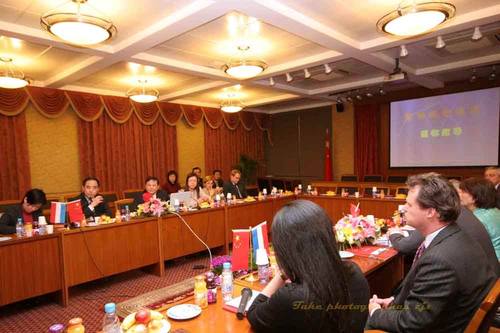 高职学院院长张子厚向来宾们介绍了高职学院、高级技校的办学历程、办学条件、办学特色、师资队伍建设、中、高职专业设置、职后培训、校园文化和大力培养高技能人才等方面的情况。 鹿特丹市副市长Leonard Geluk先生在会谈中表示,非常感谢郝建平副校长和张子厚院长的介绍,他感到耳目一新,认为这是一所高水平的学校,作为鹿特丹市和上海市二个非常友好的姐妹城市,不仅有很好的航运和贸易交往,而且应在职业教育方面建立更密切的合作关系。 双方就如何发挥主动,创造机遇,上海职业技术教育如何适应制造型向服务型结构转变,如何吸引年轻人参加岗位技能培训等方面作了进一步探讨。来宾们对学校适应市场企业需求,以市场为导向,对接上海先进制造业与现代服务业,构建开放型一体化培训模式,大力培养具有创新精神和实践能力的高素质、复合型人才的努力表示赞赏。