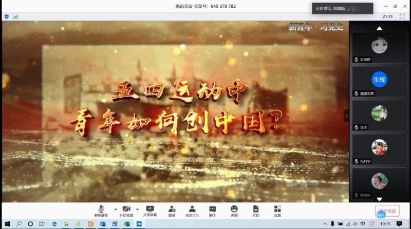 教工第二党支部通过腾讯会议开展党课活动,支部书记吴中成讲授的党课题目是“从历史中汲取精神力量、汲取经验智慧、汲取坚守人民立场的定力,为奋力夺取疫情防控和实现经济社会发展目标双胜利提供强大思想保障”。他带领大家回顾了五四运动,观看了“致敬--疫情逆行者”影视资料,结合历史和当下,分析了五四精神的新时代表现,以及如何汲取五四精神力量。数理与统计学院王国强副院长进行了点评,他认为党课把历史精神的形成和新时代的继承融合在一起,能更好理解五四精神核心所在,党课讲的透彻明白,对学习四史有很好借鉴意义。作为课程,党课还可以在设计上融入更多的提问、讨论、作业环节。