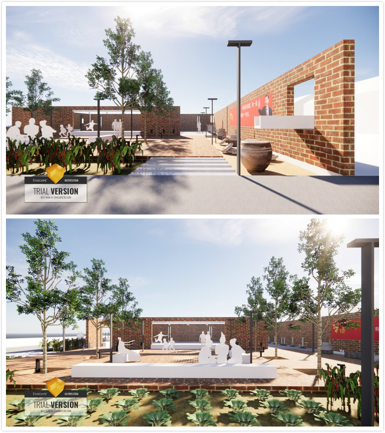 为深入推进“四史”学习教育,传承红色基因,汲取红色力量,艺术设计学院党委教师党员主动服务国家乡村振兴战略,两位老师应山东省菏泽市鄄城县董口镇政府的邀请,为所辖后元村村文化广场进行规划设计。山东省菏泽市鄄城县在抗日战争时期曾是冀鲁豫边区的红色堡垒地带,目前后元村尚未实现脱贫。疫情期间,两位老师的现场考察工作受到了限制,双方通过网上沟通,对方案反复修改,最终确定以山东当地特色元素“石碾、农具”作为文化广场的景观主题。据两位老师介绍,方案主要采用当地常见的红砖作为设计原料,结合山东乡村常见的石碾子和水缸等元素作为设计切入点,村民对寓意深刻的“水缸蓄水”设计方案交口称赞。