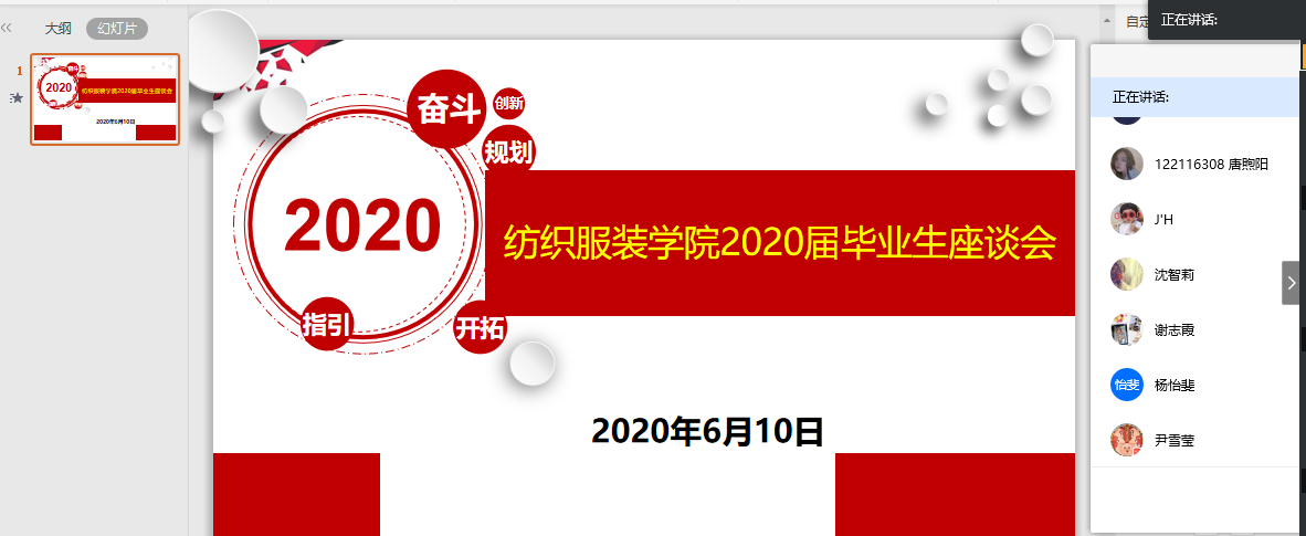 为深入了解毕业生就业情况,有针对性地对待就业学生进行就业帮扶与指导。6月10日晚,纺织服装学院召开了2020届毕业生线上座谈会。纺织服装学院党委副书记谢志霞出席会议,就业辅导员、毕业生辅导员以及2020届毕业生代表参加了此次会议。