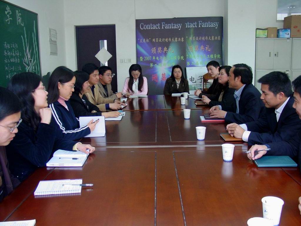 王明复处长首先充分肯定了电子电气工程学院学生工作,随后围绕代表学院文化的学生工作及其服务管理的改进和提高、打造学生工作品牌、凝炼学生工作亮点等方面进行了指导。王处长指出,电子电气工程学院学生工作要在保持原有良好工作理念和工作氛围的基础上,努力提升学生工作队伍的整体素质和内涵,更为科学、合理、有效地开展学生工作,提升学生工作服务管理水平,争创学院学生工作品牌。 电子电气工程学院党总支副书记李军向学生处领导汇报了学院学生工作情况,并从网页设计制作大赛、数学建模竞赛、电子设计竞赛、职业技能竞赛等四大专业大赛,辅导员团队建设、学生干部培养等方面做了详细汇报。随后,王处长等学生处领导与辅导员们就学生工作管理服务问题的改进和提高进行了气氛融洽地交流讨论,并勉励在场辅导员不断增强业务水平、提升科研能力,为电气学院学生工作百尺竿头更进一步打气。电子电气工程学院学生工作团队一致表示,立足本职工作,服务育人,团结一致,不断探索研究学生工作新思路,为创建和谐校园而奋斗!