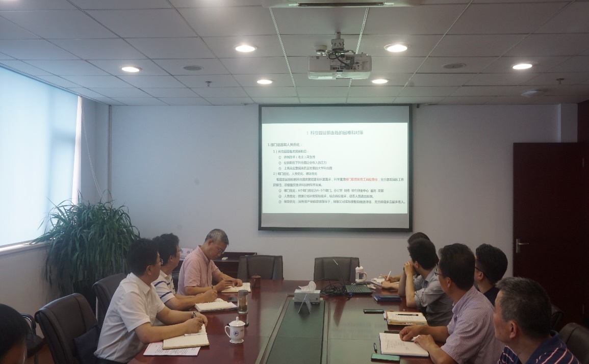 6月10日下午,王岩松副校长莅临科技园,调研园区目前体制转型下的高质量发展和空间布局规划工作。继教产业联合党总支书记叶枫、产业管理办公室主任施明、产业管理办公室副主任兼国家大学科技园总经理钱宇彬陪同调研,出席调研会议的还有科技园各部门相关负责同志。