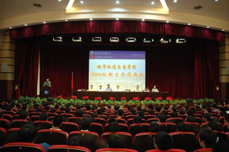 9月15日下午,城市轨道交通学院在松江校区志宏堂举行了2006级新生开学典礼。校党委书记曹伟武、校长汪泓、副校长孙培雷、上海地铁运营有限公司总经理周淮、学生处处长王明复应邀出席了此次典礼。典礼由副校长孙培雷主持。典礼上,新生代表和教师代表分别做了发言,汪泓校长和周淮总经理分别对学生和老师提出了要求,希望全体教师敬业工作,把学院建设好;广大同学刻苦学习、积极进取,成为合格的地铁人。