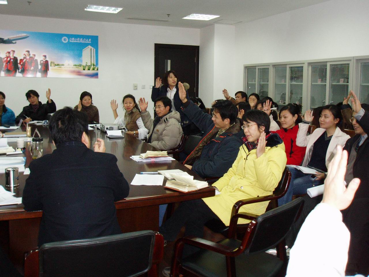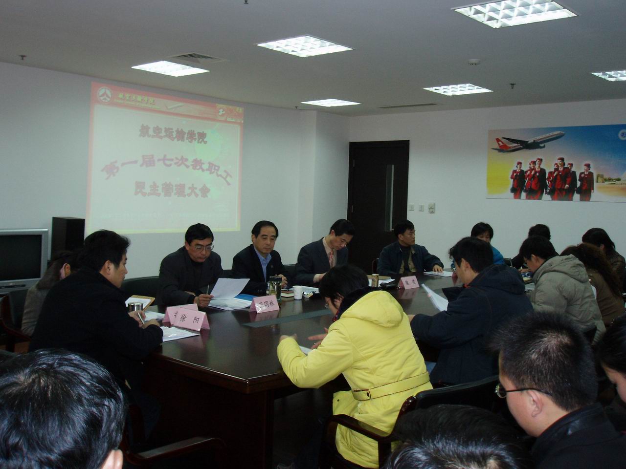 |  1月12日下午,航空运输学院在学院会议室举行第一届七次教职工民主管理大会,副校长郝建平出席了会议,学院总支书记卫国林、院长魏建及全院教职工参加了会议。会议由院总支书记、工会主席卫国林主持。 此次大会,全体教职工听取、审议、并以举手表决方式一致通过了《航空运输学院教育事业发展第十一个五年规划纲要》、《航空运输学院以评促建、建立长效机制的工作计划》、《航空运输学院岗位绩分制》等议案。各小组认真讨论,为学院的发展献计献策,提出不少积极的建议。 最后,学院总支书记卫国林做了题为《同心同德锐意进取,为全面完成2007年工作任务而努力》的报告。副校长郝建平指出,航空运输学院很有发展潜力,偏年轻的师资队伍虽然是不足之处但也是财富,重要的是怎样把不足转化为资源;他还要求航空学院要抓住航空企业发展的机遇,大力发展学院职业性强的特征,要敢于面对国际、国内市场,学会运用校内外资源。 航空运输学院第一届七次教职工民主管理大会的胜利召开,是航空运输学院教职工民主参与学院管理,发扬主人翁意识的重要表现。航空运输学院将奏响新的乐章,全体教职工面对信的挑战,信心倍增,更加明确今后的奋斗方向! |