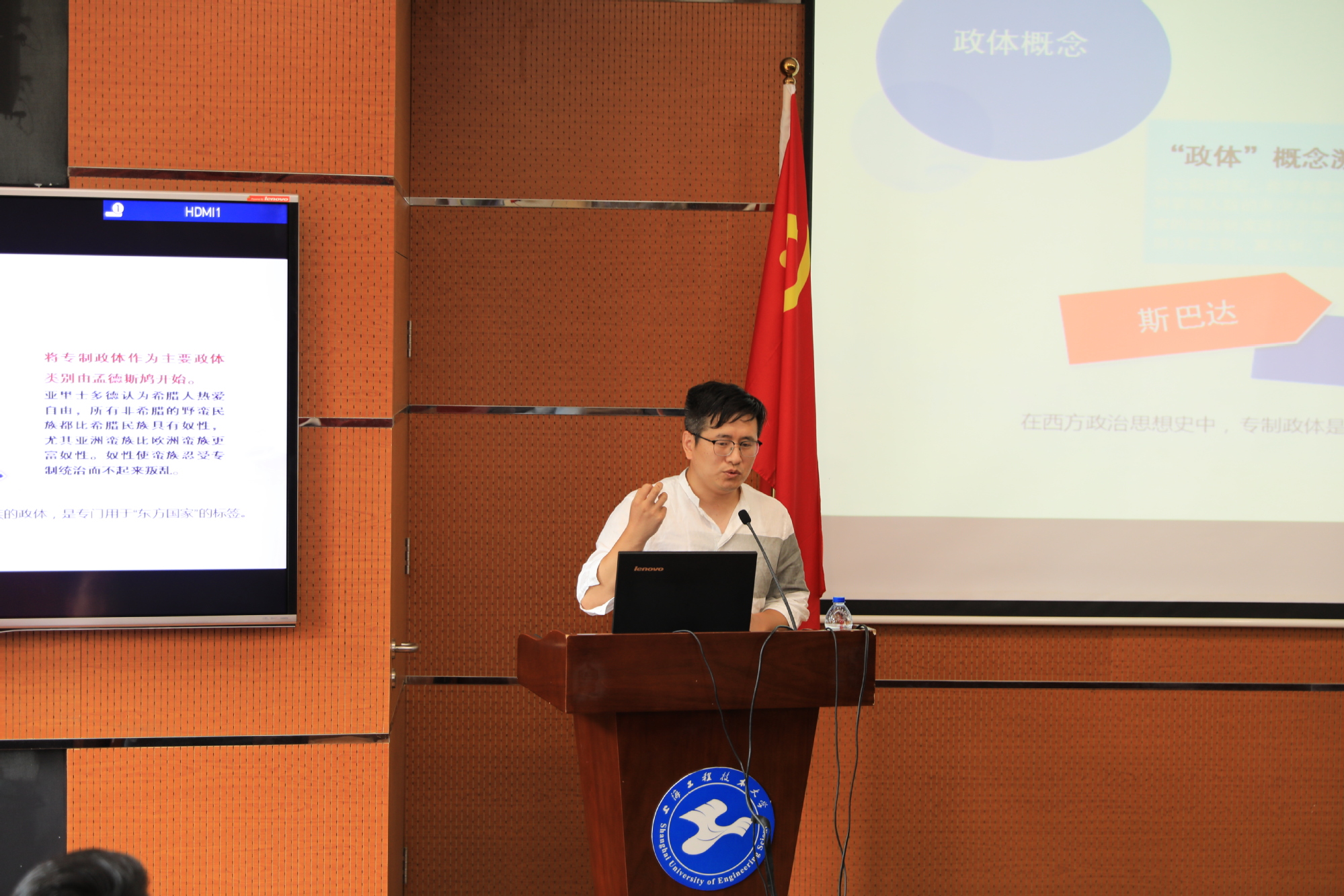 刘剑伟老师分别从政道思维与政体思维、中国社会主义制度“道”与“术”的辩证统一关系、学习社会主义发展史的启发及感悟等四个方面进行讲解。他讲到,要以理想信念为目标,现实情况为依据,中国特色社会主义制度为参照,处理好传承与变革之间的关系,探索改革发展的道路。