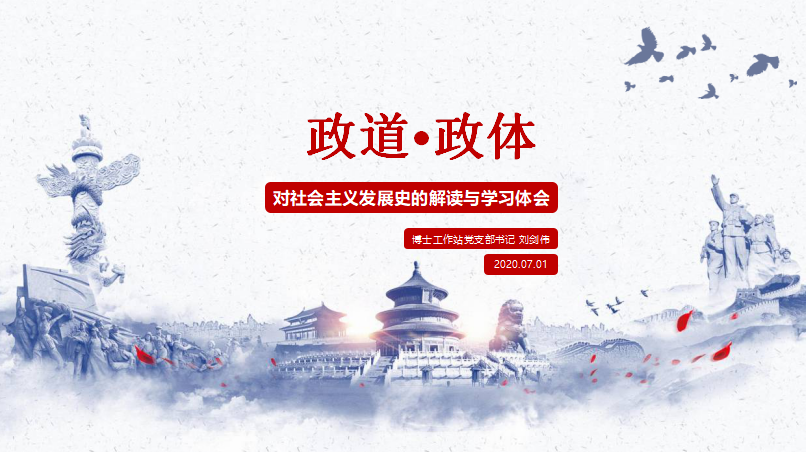 为庆祝中国共产党成立99周年,深入贯彻习近平新时代中国特色社会主义思想,学习党史、新中国史、改革开放史和社会主义发展史,7月1日,艺术设计学院党委博士工作站党支部开展“四史”学习教育专题党课。支部书记刘剑伟带领支部党员以“政道与政体”为题,领学社会主义发展史。