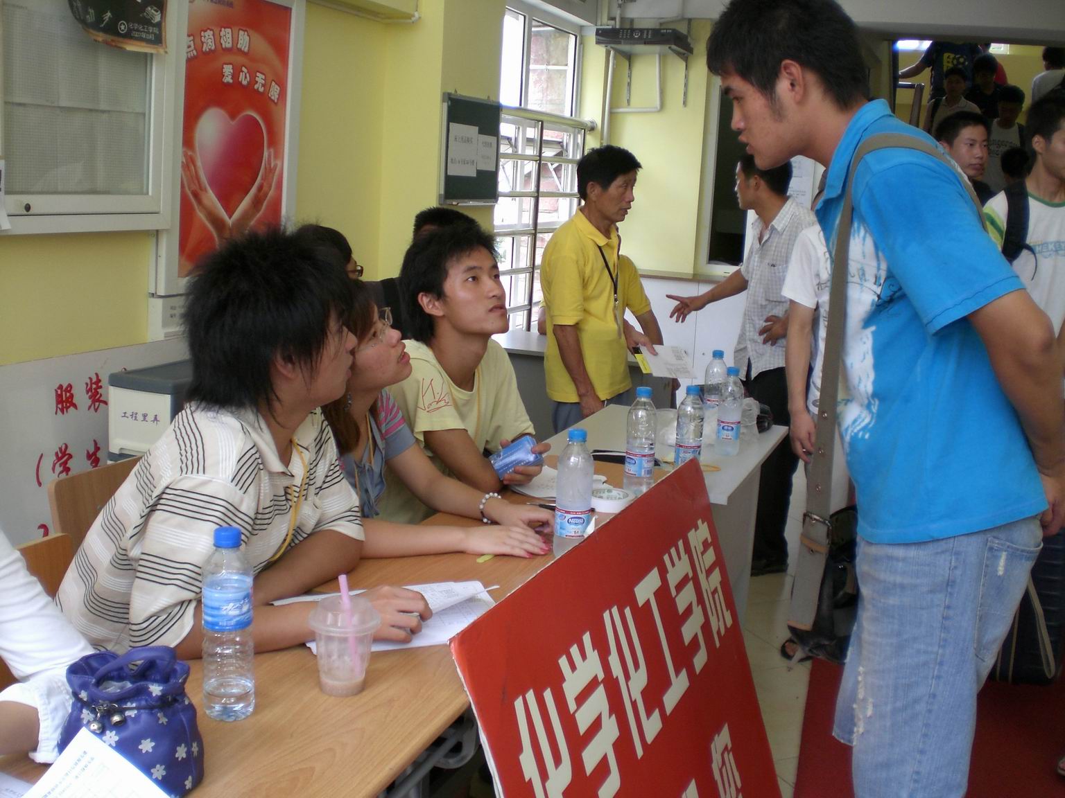 2007年8月26日,上海工程技术大学迎来了新一届的大一新生,化学化工学院07届新生也于当日下午陆续报到。虽然上午的天气时阴时雨,但是学院志愿者们11:30就热情高涨的早早来到新生报到的宿舍底楼为新生报到做准备工作。一场突如其来的暴雨并未浇灭大家的热情,志愿者们依然热情不减地给予新生最大的帮助。在学院领导及分团委的组织下,我们还为新生特制了“化学化工学院联系卡”,并挂出了学生会的招新信息, 用实际行动体现了我院对新生的充分关怀。正午时分党委书记曹书记来到新生宿舍,看望了我院师生。