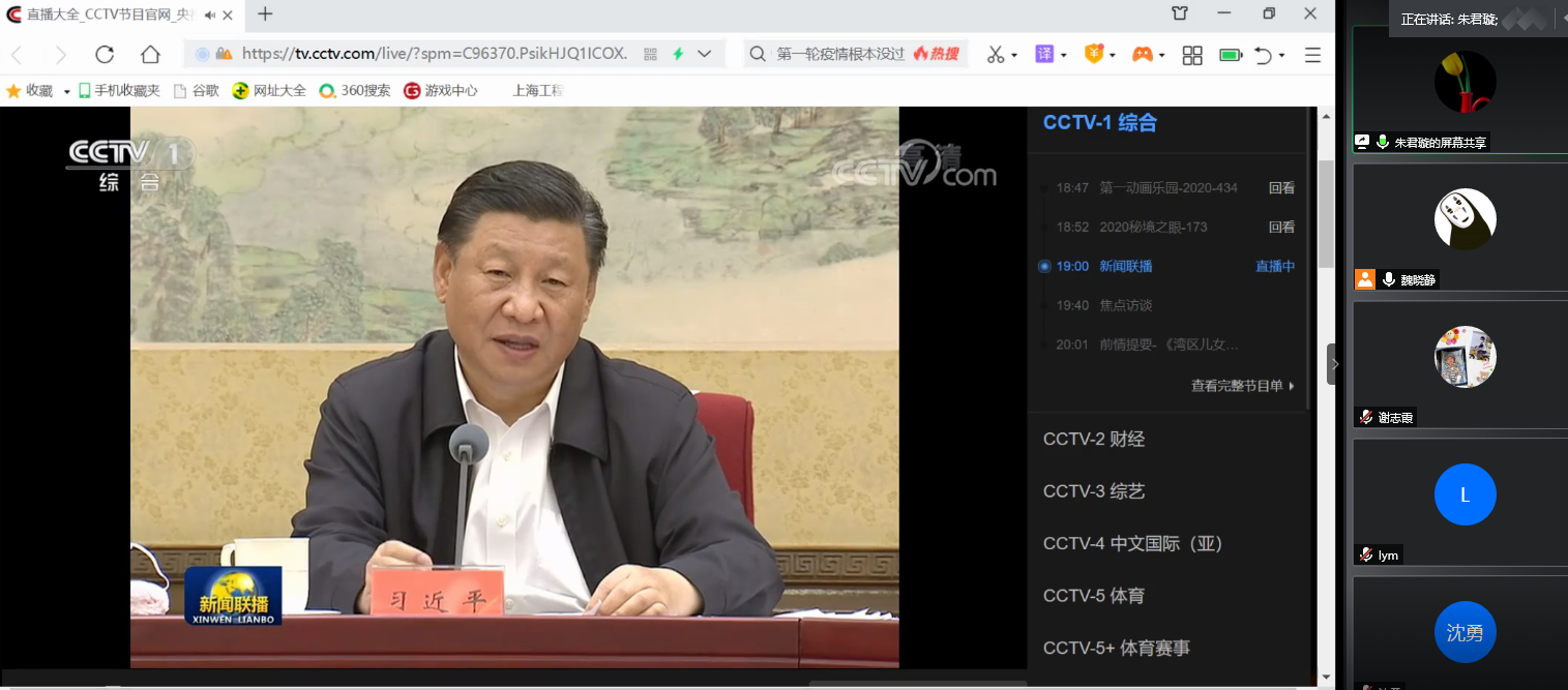6月30日晚,党政班子成员、各个支部党团员集体观看《新闻联播》,热议总书记给复旦大学《共产党宣言》展示馆党员志愿服务队全体队员的回信精神,坚决拥护党中央的决定,希望香港长治久安、繁荣稳定。教工党员徐丽慧认为“坚定初心使命,忠诚于党,将政治理论学习与教学、科研紧密结合,深入加强理论知识在工作中的实际应用,为党育人、为国育才”才能做到“心有所信,方能行远”;青年团员翟雨桑表示“随着‘四史’学习的深入,越来越感悟到党组织的先进性、伟大性,听了总书记的话语,令我想更进一步的接近它,成为党组织的一份子,成为一名光荣且具有使命感的党员”。
