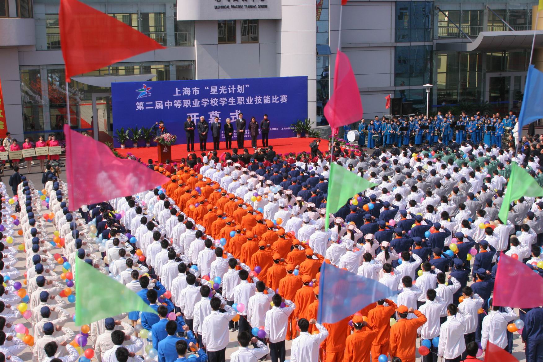 317上午1000,阳光灿烂、春风和煦,上海市“星光计划”第二届中等职业学校学生职业技能比赛在嘉定上海工业学校隆重开幕。上海市政协副主席、上海教育发展基金会理事长谢丽娟、上海市人民政府副秘书长李逸平、上海市教育委员会主任沈晓明、上海市劳动和社会保障局副局长石觉敏、上海市教育发展基金会常务理事长薛喜民、嘉定区副区长夏以群等出席开幕式,上海市教委副主任瞿钧主持开幕式。