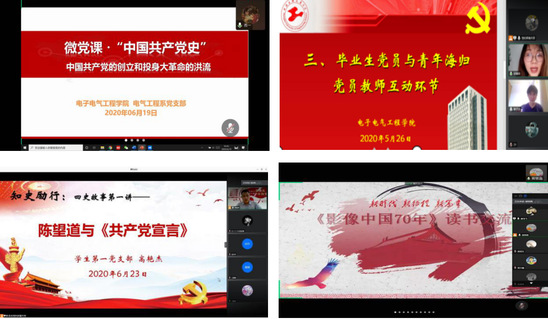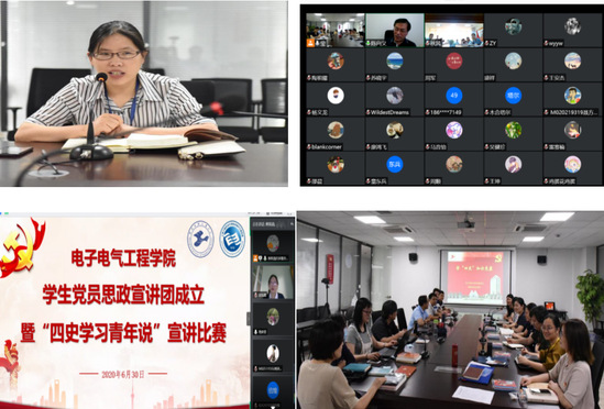 在党支部层面,电子电气工程学院各支部围绕党史、新中国史、改革开放史、社会主义发展史学习教育内容,安排“四次主题党日”,抓好学习落实,电气工程系党支部的微党课学习了“中国共产党史”,研究生第三党支部召开了《影像中国70年》读书会,学生第一党支部分享了“四史”故事陈望道与《共产党宣言》,把“四史”教育落细、落实。