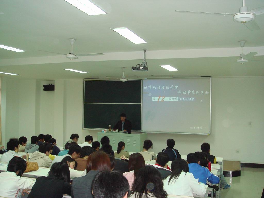 |  2007年4月23日是第12个世界读书日,同时恰逢城市轨道交通学院科技节,为了倡导全院师生读书,共建和谐的校园文化,进一步激发全院师生读书热情,同时宣传、引导学生利用图书馆、教室自主学习和终身学习,当晚在教学楼F302举行了“阅读改变人生,共建和谐校园”为主题的“读书时间”活动,此项活动也是此次城市轨道交通学院科技节系列活动之一,活动现场座无虚席,期间陆续有同学到来加入其中。 此次“读书时间”活动将作为城市轨道交通学院的常设项目,每周一晚上爱好读书的老师和同学们都会聚集在一起,交流自己读书的心得体会或向他人推介好书和优美文章。在当晚第一次“读书时间”活动现场,学院李健老师给在场的同学们现场朗读了几篇精选美文,把同学们带进了美轮美奂的意境中,在朗读过程中现场鸦雀无声,大家都在认真聆听,在书本知识的海洋中徜徉,仿佛置身于书中所描绘的美妙意境当中。 很多同学都表示以后有时间都将参加学院的“读书时间”活动,以此来丰富自己的知识,也可以与他人交流读书心得体会。城市轨道交通学院也希望通过这样的读书活动可以有效地促进学院的优良学风长效机制建设,营造良好的学习氛围。 李健 |