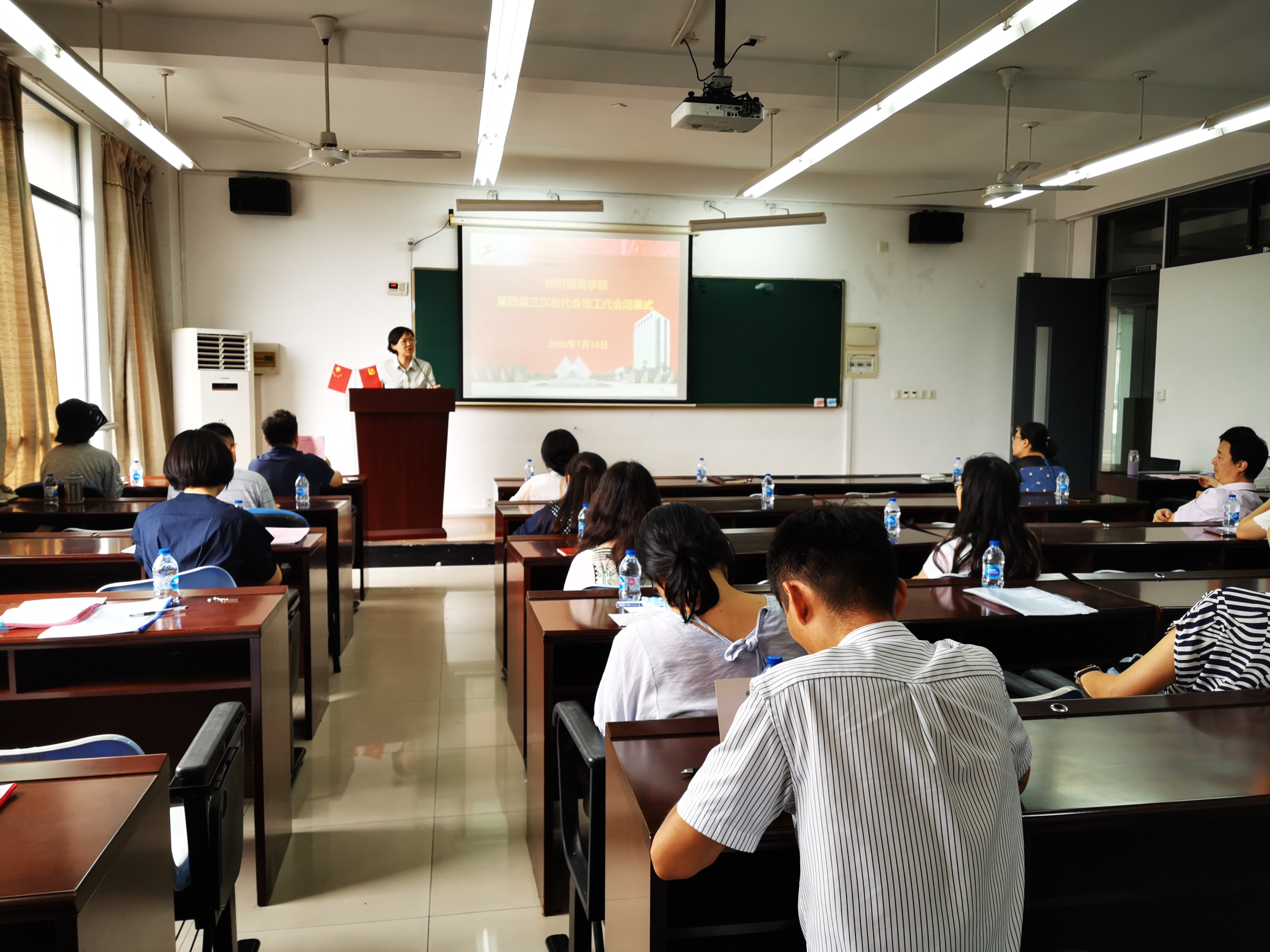 纺织服装学院于7月3日至7月10日在艺术楼C310召开四届三次教代会暨工代会,大会于7月10日顺利闭幕。校工会常务副主席柳如荣、纺织服装学院党政负责人及全体教师代表出席了会议。会议由学院工会主席王黎明主持。