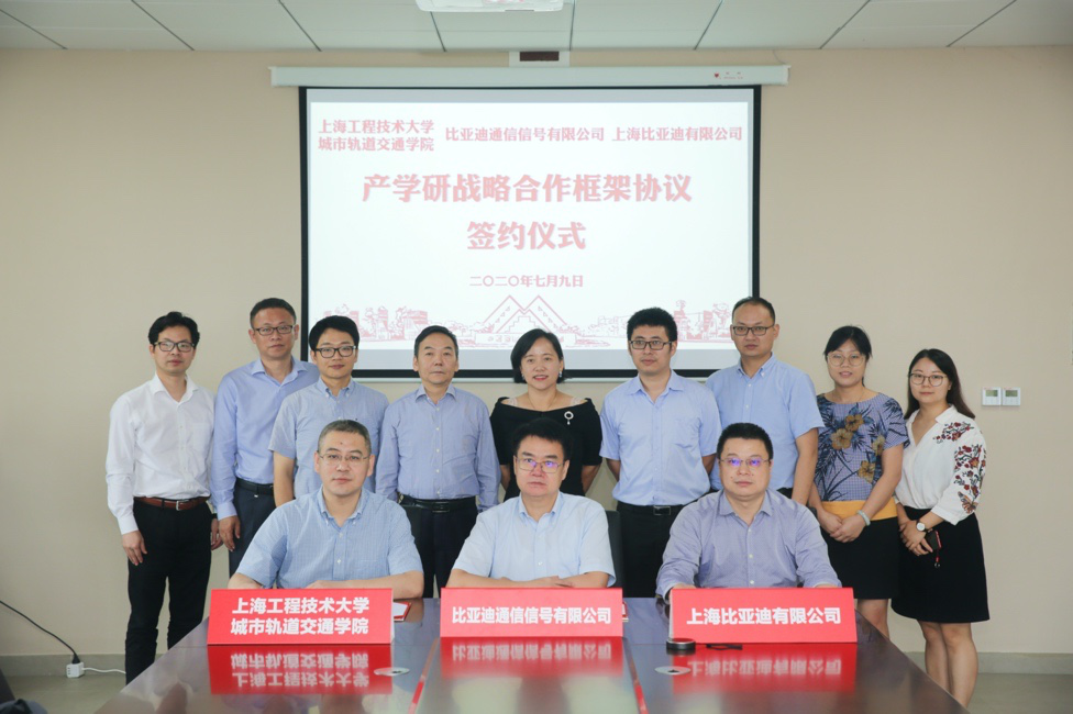 会上,学院与比亚迪通信信号有限公司、上海比亚迪有限公司三方共同签署了产学研合作协议。学院副院长何越磊,比亚迪股份总裁办公室总监、上海比亚迪有限公司党委书记周晓州分别就企校基本情况作了介绍。与会人员还参观了学院轨道交通轮轨滚动接触磨损及疲劳实验室和轨道交通运营安全检测与评估服务中心。