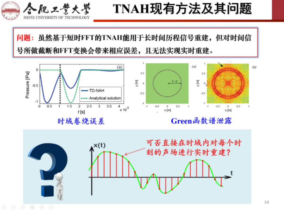 毕传兴教授由噪声控制着手,从噪声控制途径引入噪声源识别技术——近场声全息(NAH),对比稳态与非稳态声场,讲解了适用于非稳态声场的时域近场声全息技术(TNAH),介绍了TNAH的现有方法及存在问题。针对实时近场声全息(RT-NAH)的局限性,提出了相应的解决方法,并做出了很多创新工作。其中,对RT-NAH只能实现声压对声压的重建问题,提出重建质点振速、重建力等;对阵列限制问题,提出时域平面波叠加法(TDPWSM);对声场限制问题,提出在非自由场中进行声场分离;对声源限制问题,提出逆时域边界元法(ITBEM)和时域等效源法(TESM)。在此基础上,针对时域迭代求解带来的误差累计效应而导致的严重非稳定问题,毕教授提出了时域平均技术和多步求解技术,并揭示了模型求解不稳定的内在机制,提出求解稳定性的控制策略。最后,毕教授介绍了TNAH在汽车行业的应用前景及对未来研究方向的展望,使听众更清晰的了解到近场声全息技术在汽车领域所发挥的重要作用。
