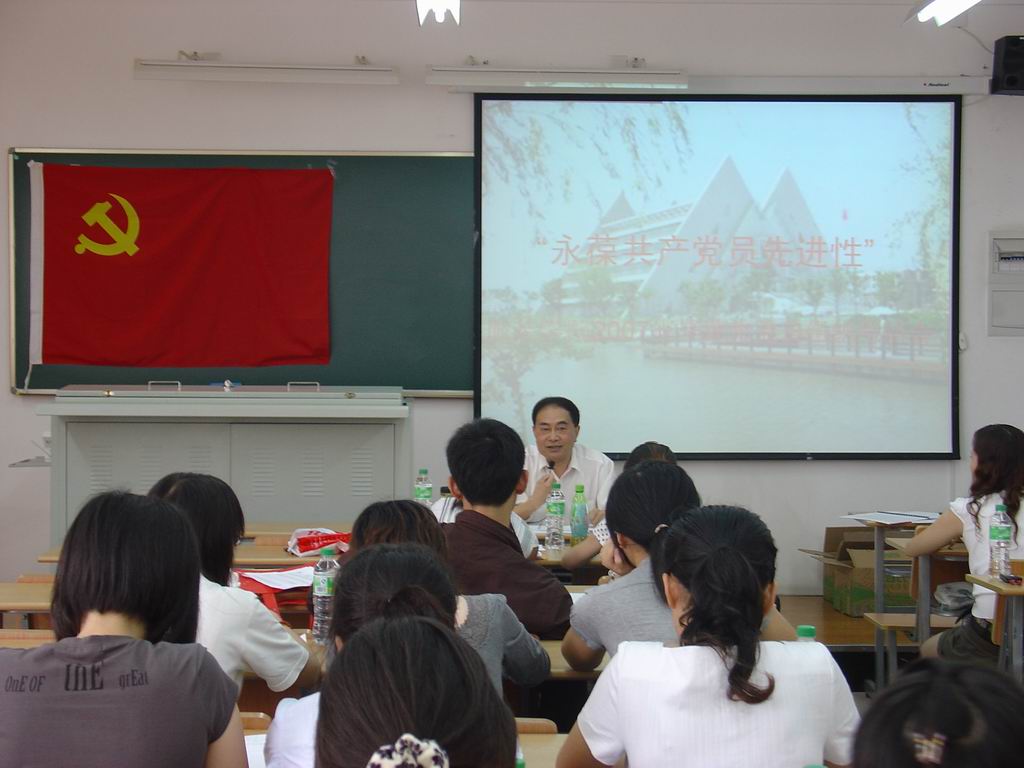 | 根据校党委组织部《关于做好2007年毕业生党员离校工作的通知》的文件精神,服装学院学生松江支部在学院党总支的高度重视下,结合支部党员的具体实际,于2007年6月18日上午10时在松江校区教学楼A206开展以“永葆共产党员先进性”为主题的毕业生党员组织生活 会。参加组织生活的毕业生党员共有60名,教育覆盖率达100%。为了提高教育的针对性和实效性,学生支部特别邀请了校组织部多年从事学生党建工作并具有丰富经验的吴德林老师。 此次党员组织生活会对毕业生党员来说意义非凡。组织部吴老师从党性、党纪、毕业生党员走上社会后如何发挥党员先进性及毕业离校如何转移党组织关系等四个方面阐述了“永葆共产党员先进性”主题。在座的学生党员被吴老师列举的大量生动的学生案例所吸引,会场不时爆发出阵阵掌声。吴老师给我们的毕业生党员上了精彩的一课,提高了毕业生党员的思想认识,达到了预期的效果。 陈小琼 |