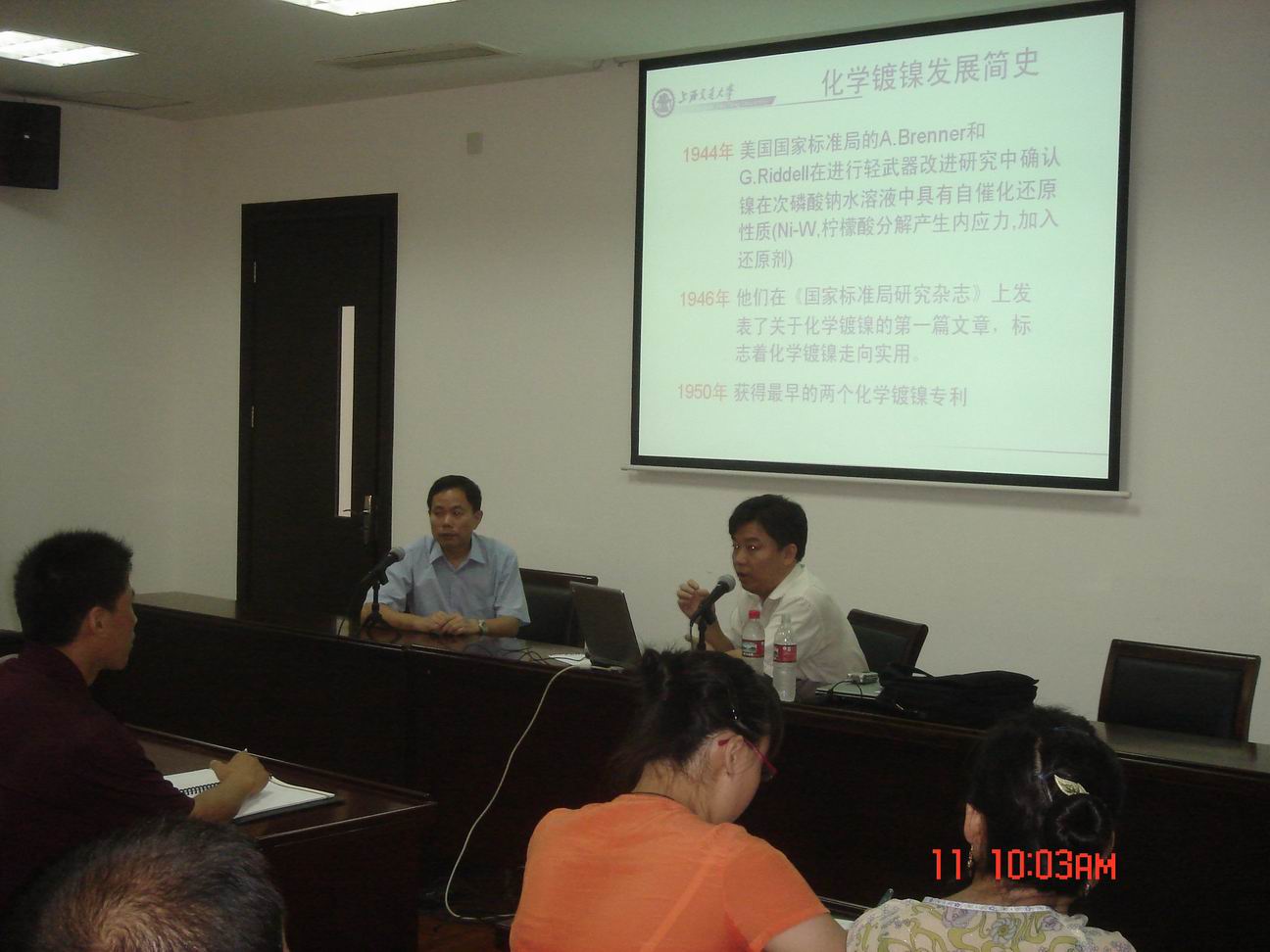 7月11日上午,上海交通大学教授、博士生导师胡文彬应邀在行政楼205会议室为材料工程学院师生作主题为“化学镀镍”的专题讲座。胡教授就化学镀镍的历史发展、当前的研究动态以及上海交通大学金属复合材料国家重点实验室在化学镀方面的科研进展等内容,结合大量的图表和数据,作了生动、明了的阐述,受到与会者的欢迎,取得了满意的效果。