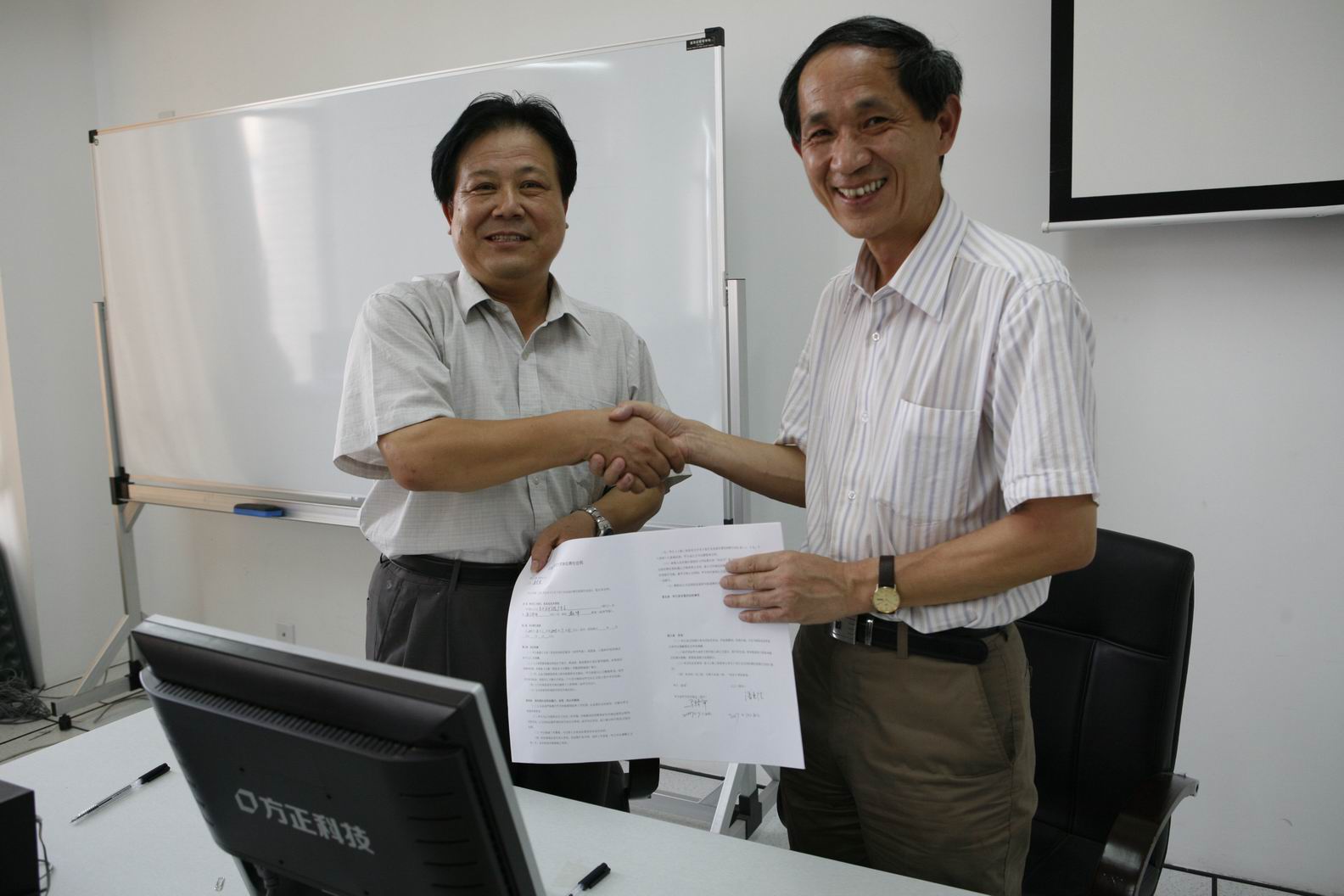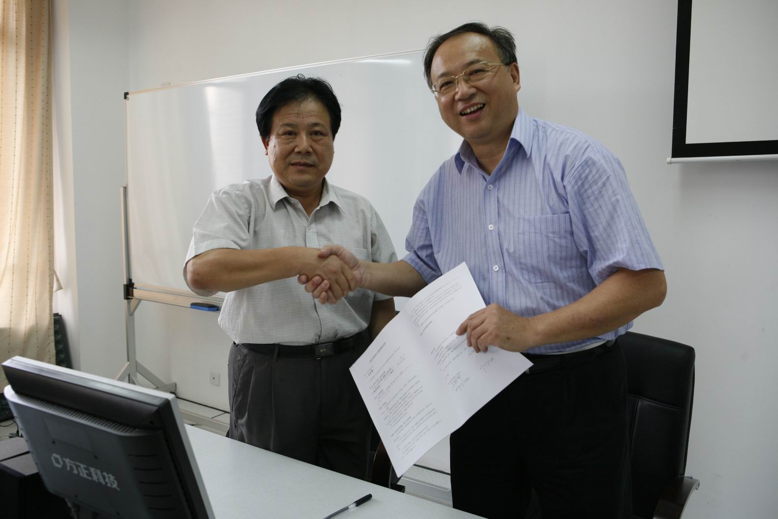 2007年7月20日上午9时30分,艺术设计学院举行了各岗位聘用的签约仪式。签约仪式由院党总支书记潘惠德老师主持,每位受聘老师与院长马新宇老师签订聘用合同。潘惠德老师首先总结了学院这学期的工作内容,代表学院向全体教职工辛勤的工作表示了谢意。同时,对下学期的工作做了重点布置,希望全院的教职工同心协力共同为学院更好、更高地发展而努力。