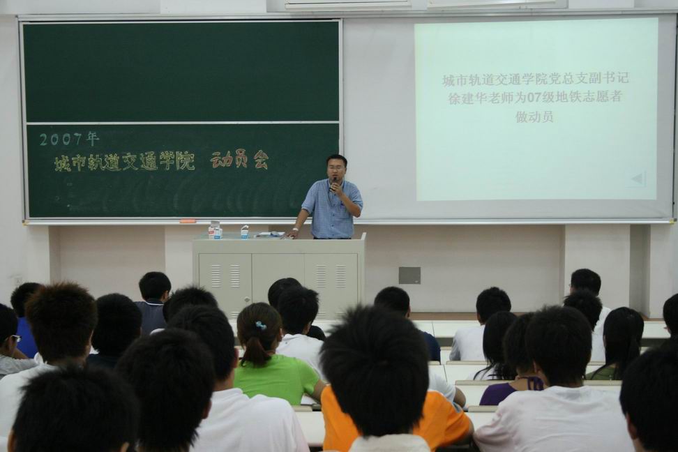 | 9月27日,城市轨道交通学院2007年地铁志愿者活动动员大会在教学楼C320室举行。校团委书记王一川老师、院党总支副书记徐建华老师、校团委副书记李扬老师应邀出席了动员大会。 本次仪式上,首先由校团委副书记李扬老师对2006年的地铁志愿者活动进行了总结。李扬老师在谈话中讲到,地铁志愿者活动作为学校、学院志愿者活动的一个品牌,开始于2005年,之后经过不断发展,逐步走向成熟。作为一名地铁志愿者,同学们应该懂得奉献,通过活动熟悉自己今后的工作岗位。他还要求同学们在活动中应该持之以恒,通过自己的努力工作来展示学校、学院的风采。 院党总支副书记徐建华老师对2007年地铁志愿者活动进行了动员,并提出要求。徐建华老师在讲话中谈到,2007年的地铁志愿者活动已经是第三年了,同学们要总结以往的经验,将地铁志愿者活动做得更大,做得更强,甚至能在上海市做出一些成绩来,而这需要同学们的共同努力。同时,徐老师还谈到,同学们代表学校、学院参加志愿者活动,应当学会做人,尽量体现出学校、学院特色。他要求同学们在活动中树立学校、学院品牌形象,在学好扎实的专业知识的同时,脚踏实地,求真务实,不断进取,勇于创新。 校团委书记王一川老师在动员中鼓励大家应该将此次志愿者活动与自己今后就业联系在一起,将专业学习与实际工作相结合,争取将地铁志愿者活动做得更好。 动员会上,2006级志愿者组长代表、2007级志愿者代表以及学院学生会主席庄园同学分别作了交流发言。 王泽军 |