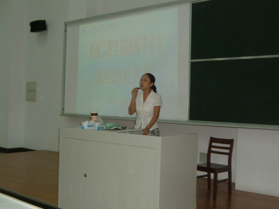2007年9月30日下午,机械工程学院在教学楼F320召开2008届毕业生就业动员大会。机械工程学院党总支副书记虞蓉老师、08届毕业生辅导员赵晔煚老师和全体08届毕业生出席了动员会。 虞蓉老师首先发表了热情洋溢的讲话。她主要和同学们介绍了往年我院的就业情况、07届毕业生的就业分布以及最新的就业趋势。她要求所有08届毕业生从现在起应积极开始进行就业的各项准备,通过不同的信息渠道主动了解就业信息。随后,学院产学合作基地单位――安托集团的销售经理为我院同学作了一场就业讲座。最后,学院07届毕业生沈勤和学弟、学妹门一起分享了他的就业心得。  通讯员 赵晔煚 |
